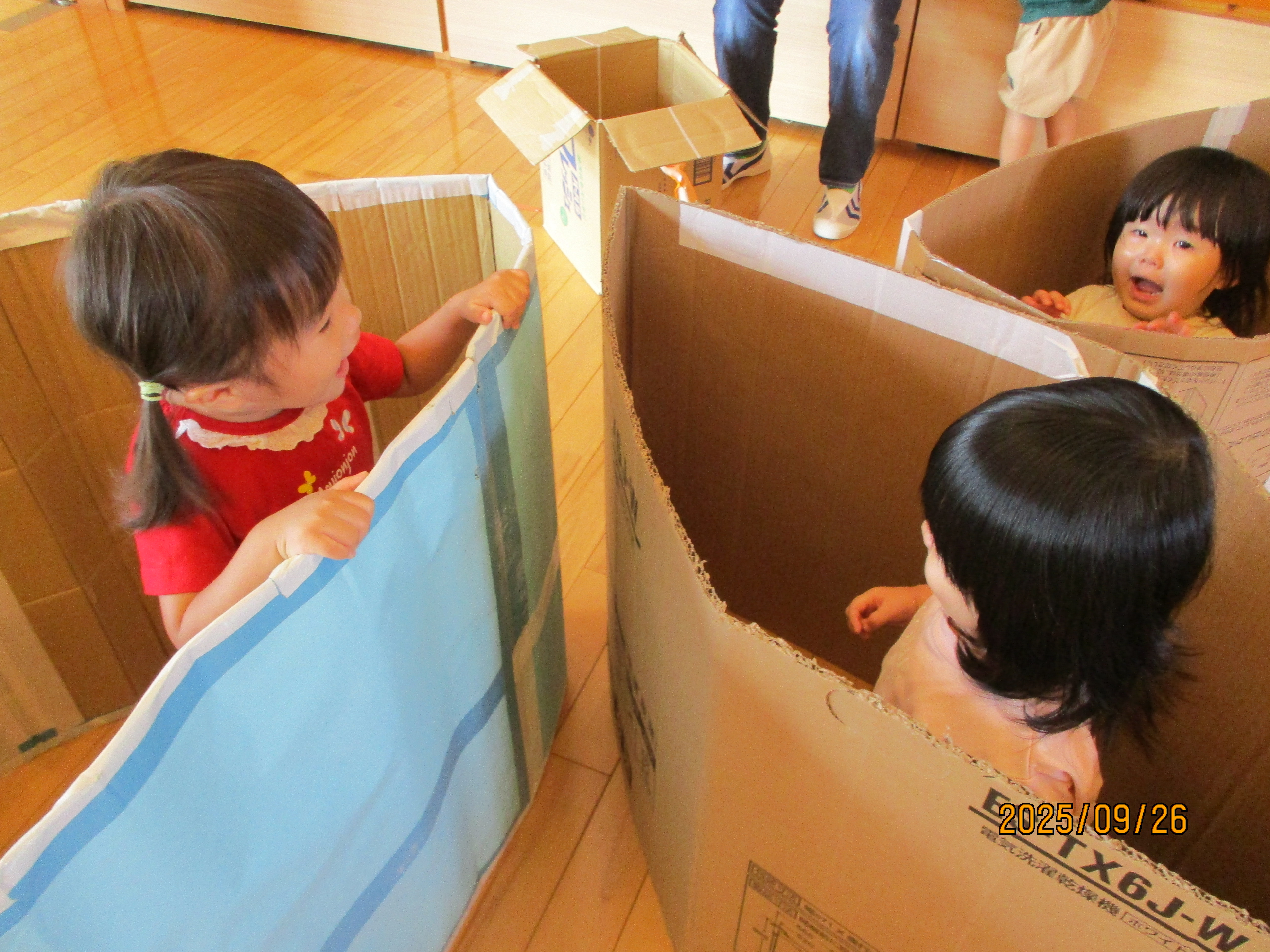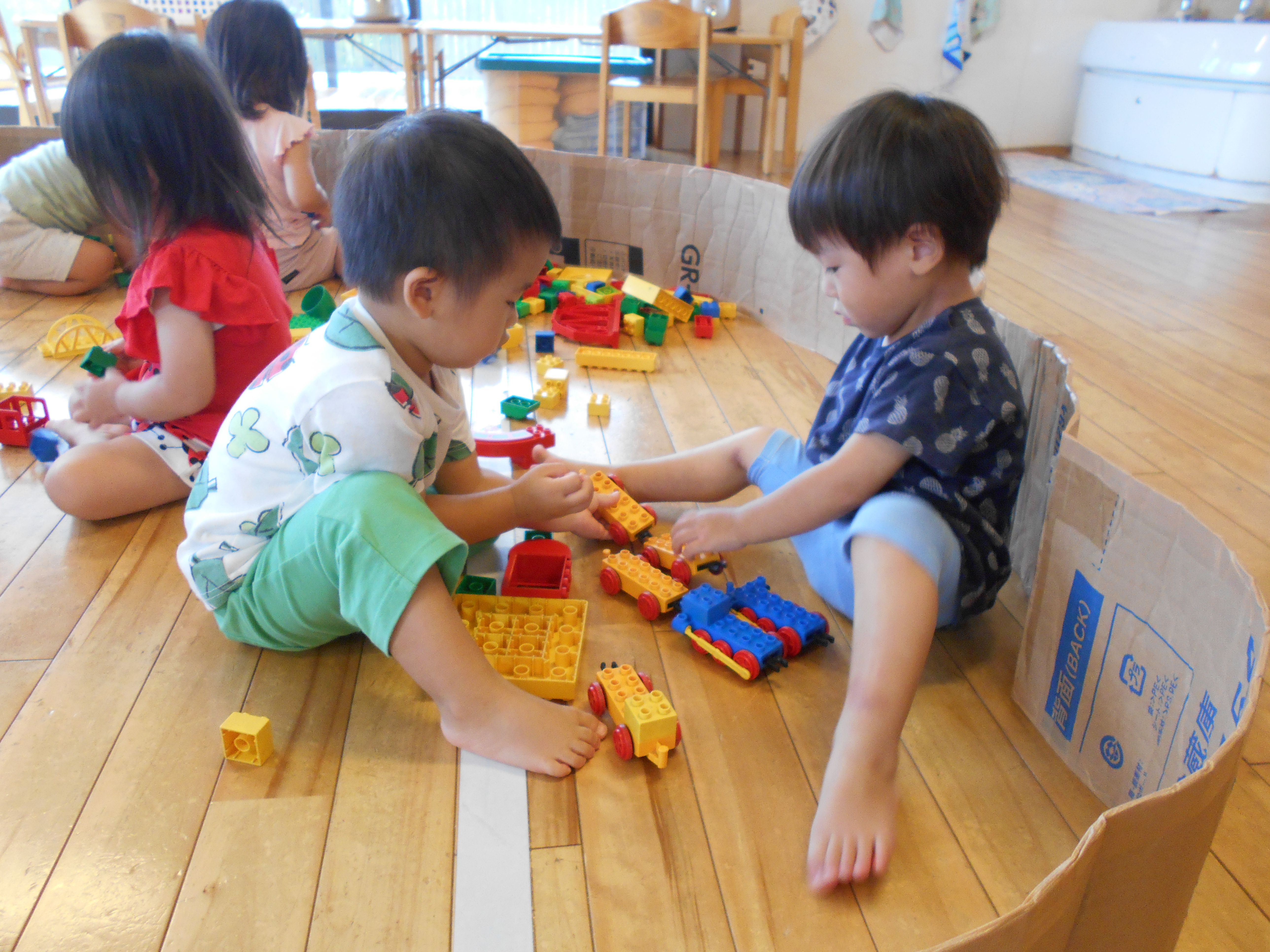 一人ひとりの発達に応じたあそびを取り入れ、毎日楽しく過ごしています。友だちとの関わりも増えおしゃべりも盛んです。