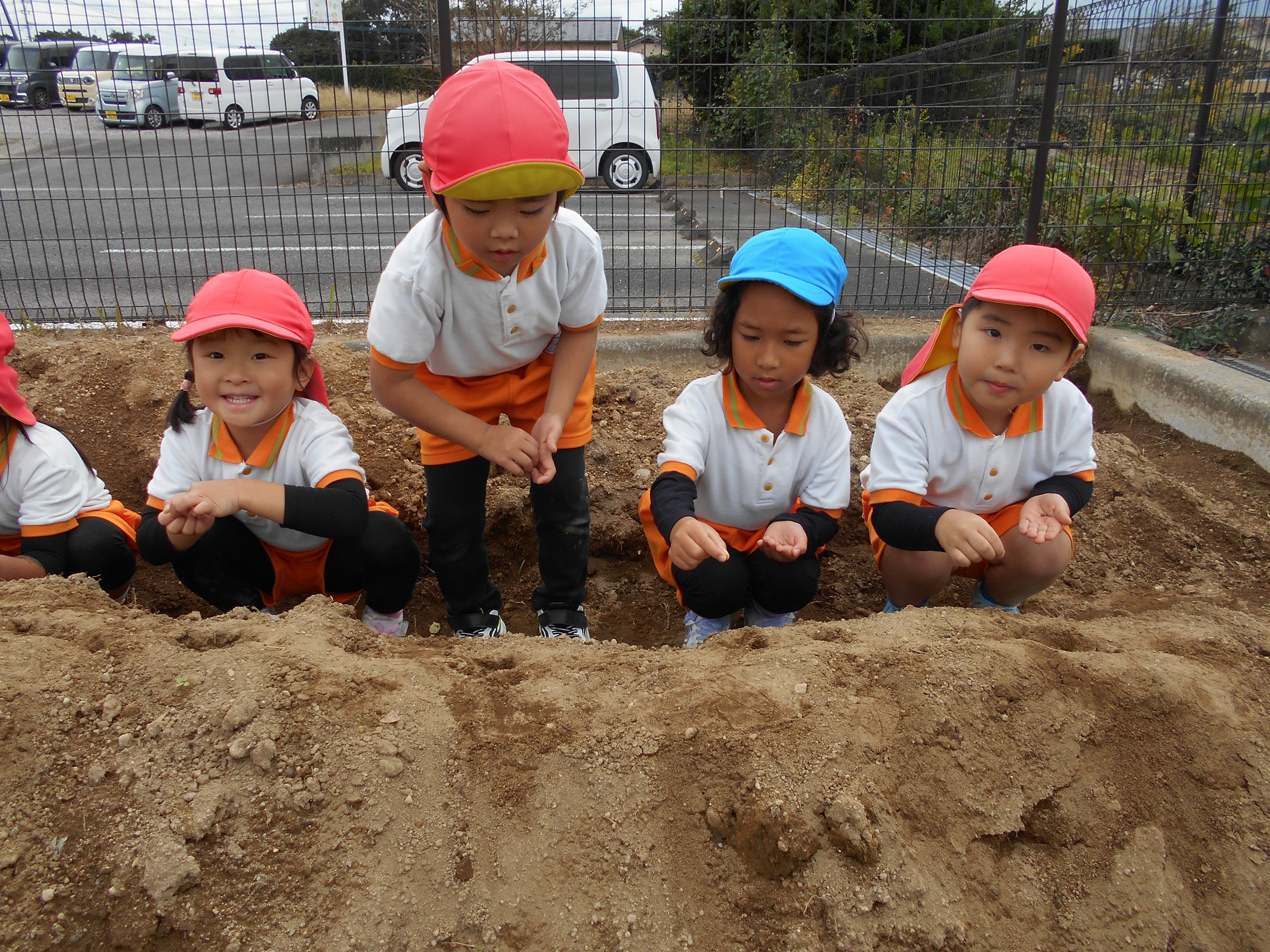 芋ほりをしました。保育園の小さな畑ですが、沢山の収穫がありました!