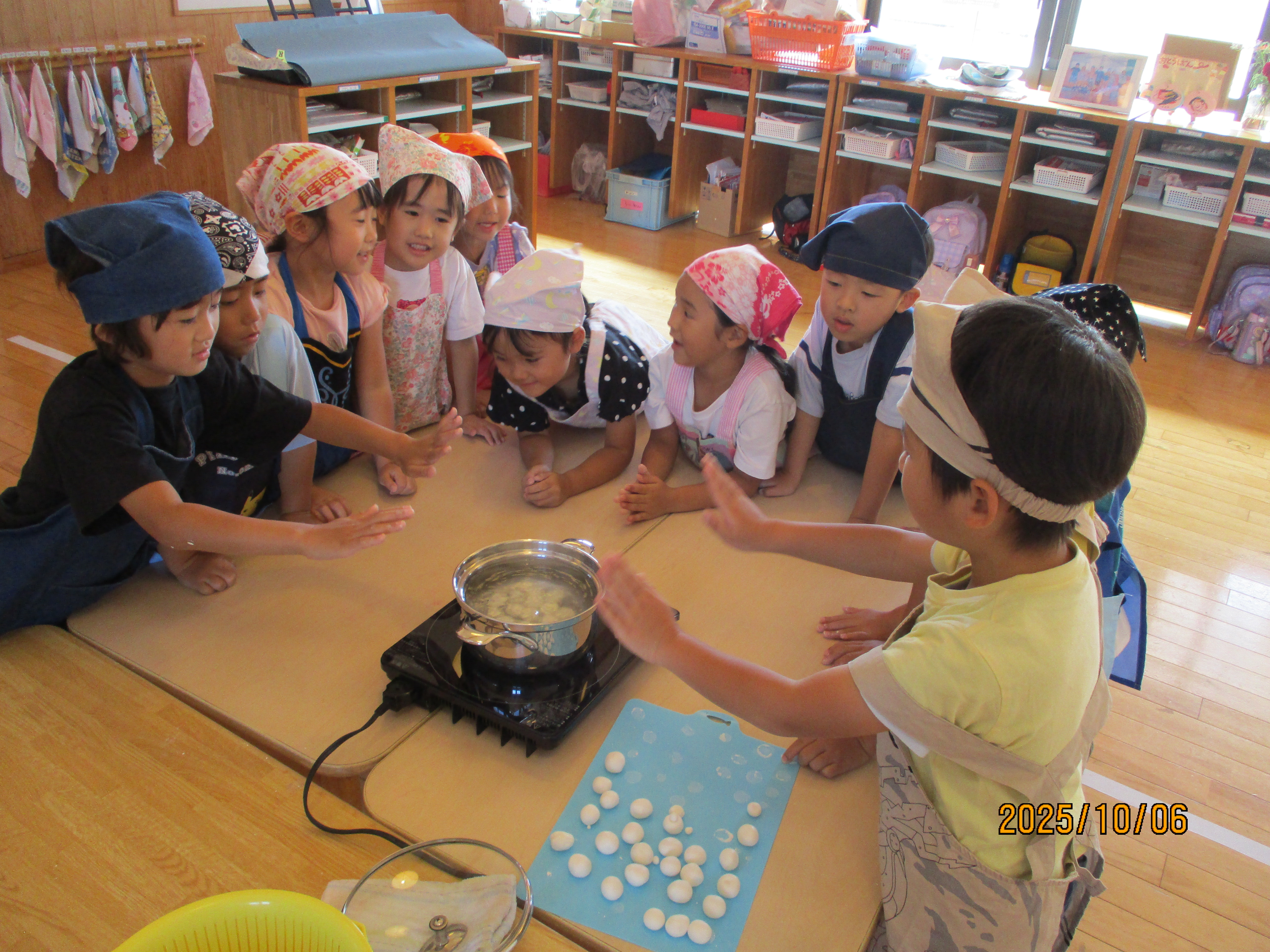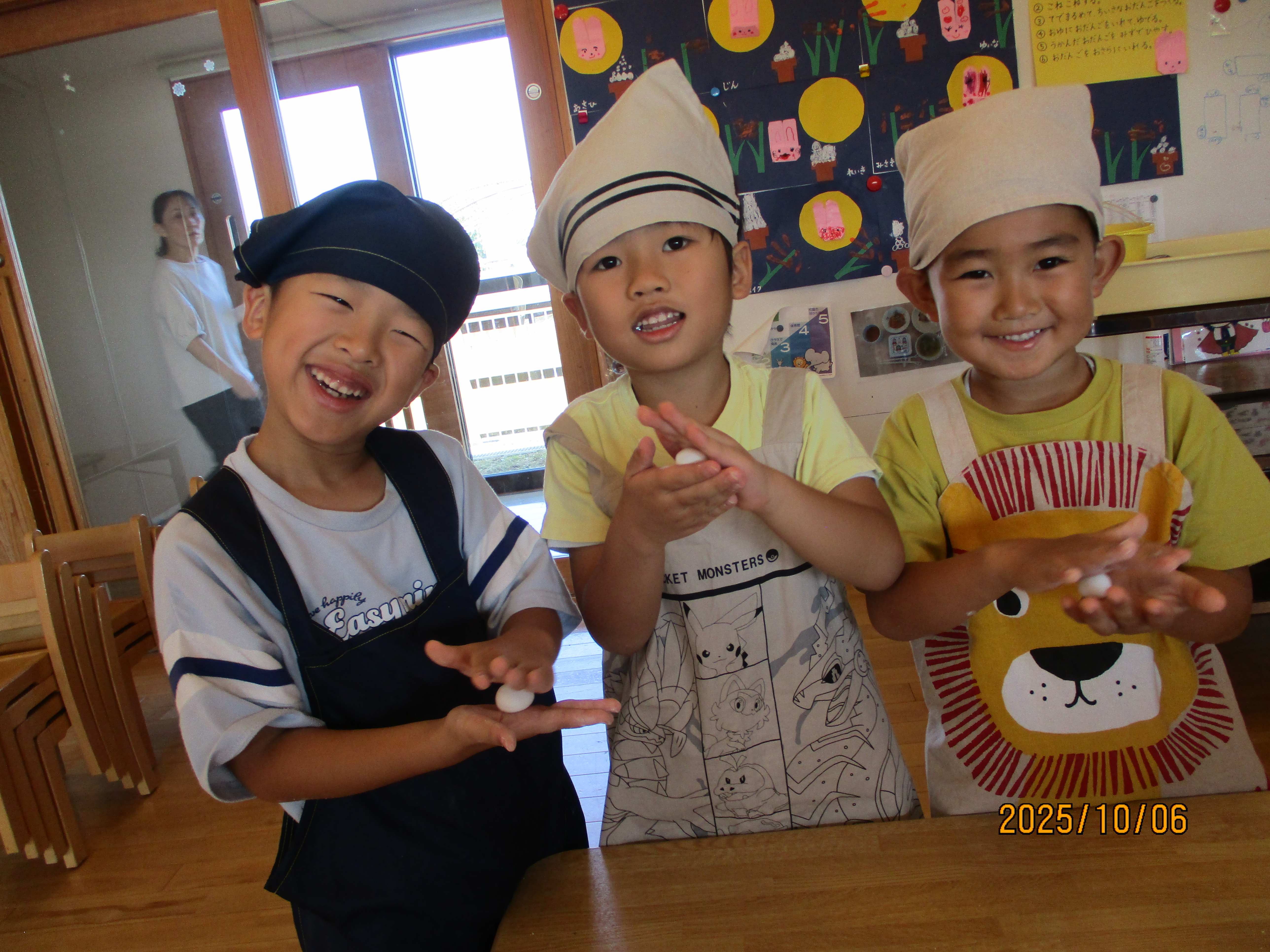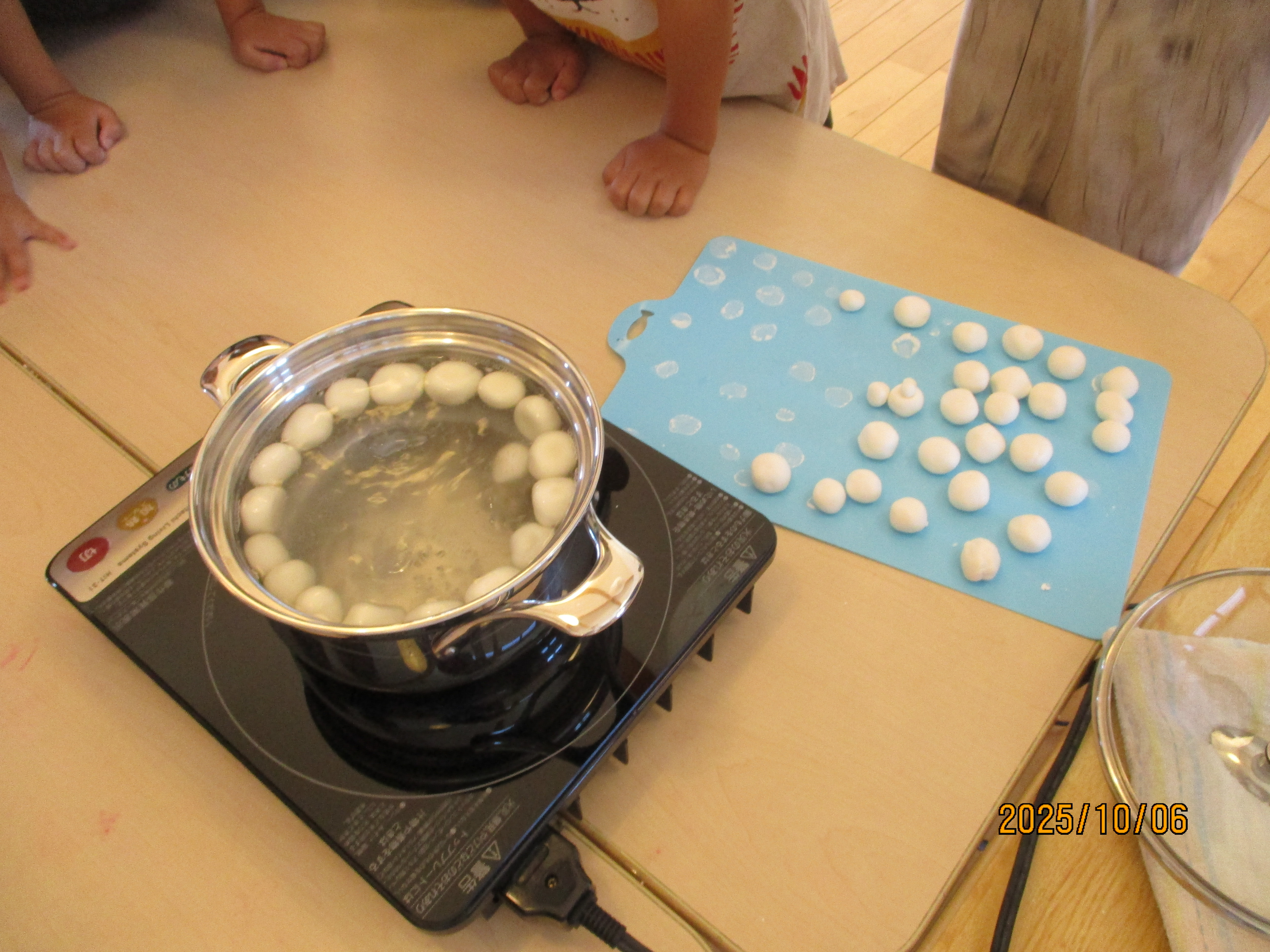 10月6日は中秋の名月。ひまわり組さんは、『お月見団子作り』をしました。