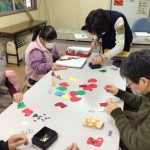 玄関前で、笹に飾りつけをしました♪ 笑顔