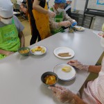 予め、1人ずつ皿にお菓子を取り分けておき、