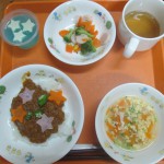 18頃からみんなで夕食の時間。七夕にちなんだ、お星さまカレー(野菜が✩型に)や七夕ゼリーがでました