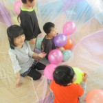 お友だちと一緒に、風船やシャボン玉、絵の具あそび、おままごとあそびをしたり・・・・