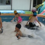 子ども達が大好きな水遊びでは、プールにおもちゃを入れて宝探しをしたり、泡あわにしたりと、たくさん遊びました。次の夏もた~くさん水遊びをしたいなぁ・・・。