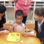 一緒に作品を作ったり、手遊び歌や体遊び歌等の触れ合いあそび、親子マッサージをしたりと、 おじいちゃん・おばあちゃん、保護者の方々