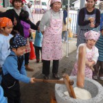 「おまつりごっこ」では、子ども達がお神輿や賽銭箱、太鼓などを持って、園周辺の施設等をまわります。 子ども達の元気な、「わっしょい、わっしょい」の掛け声に、たくさんの方がお賽銭を入れてくださいました。 ご協力いただいた近隣施設の方々、ありがとうございました。