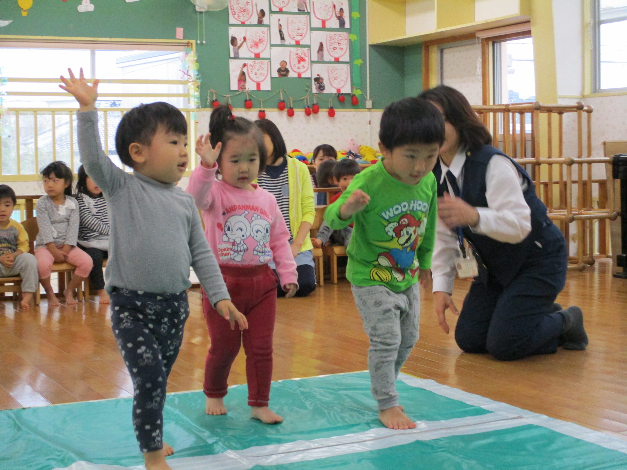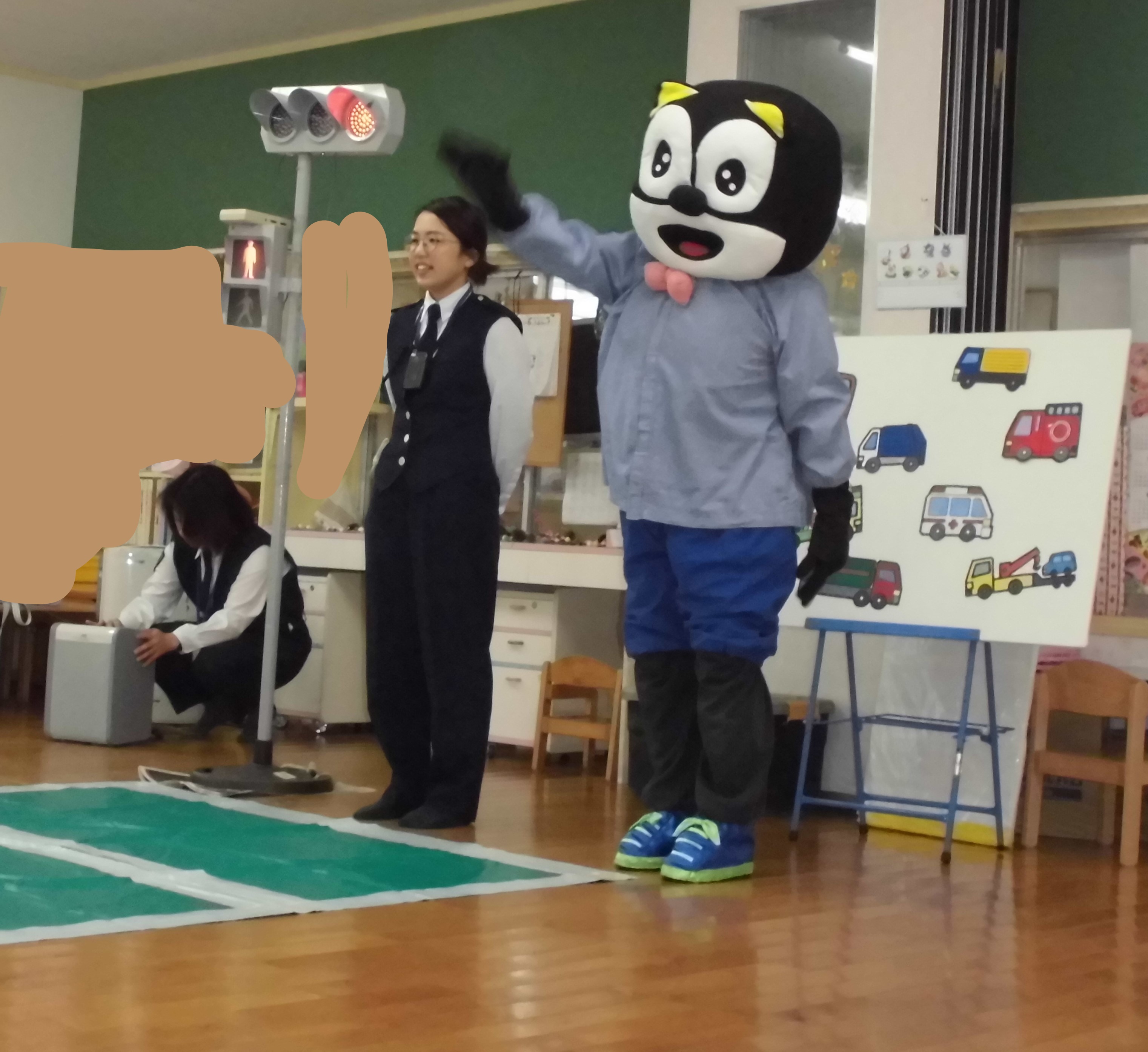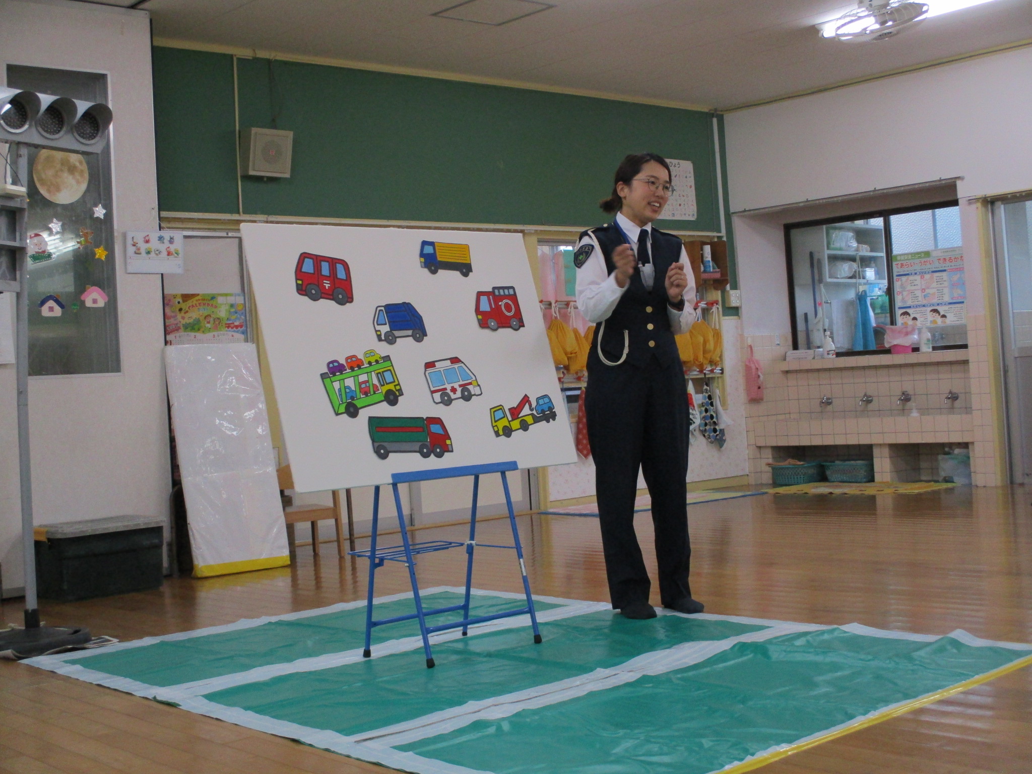 みんながとても真剣な表情で話を聞いて交通マナーを学びました。また、”はたらくくるま”のパネルシアターでは、興味津々に聞き入っていましたよ。横断歩道も、上手に「みぎよ~し!、ひだりよ~し!と確認して手を挙げ、渡ることができていました(^^)/
