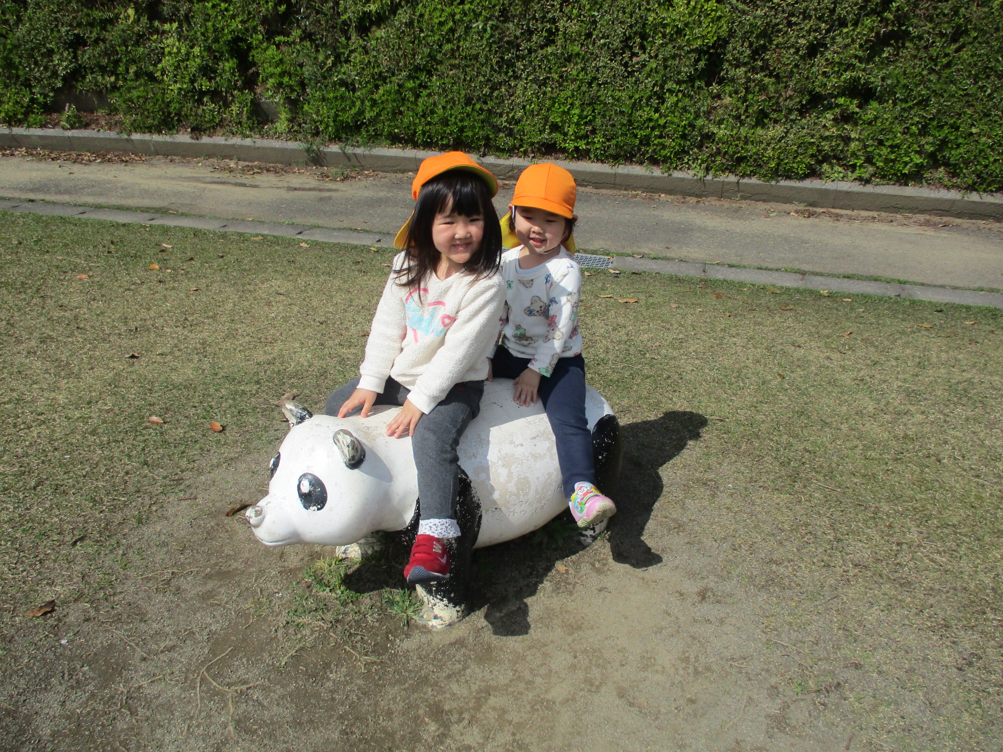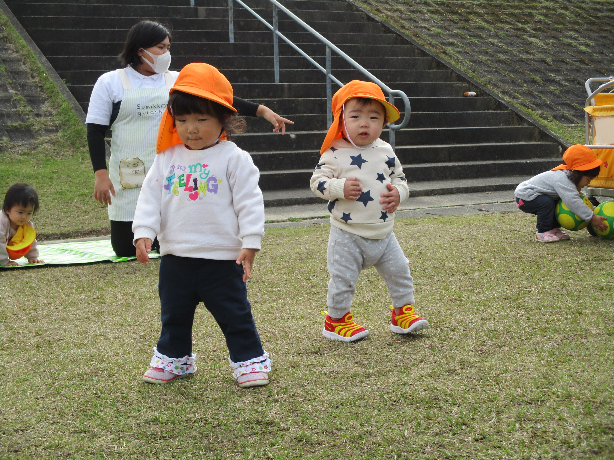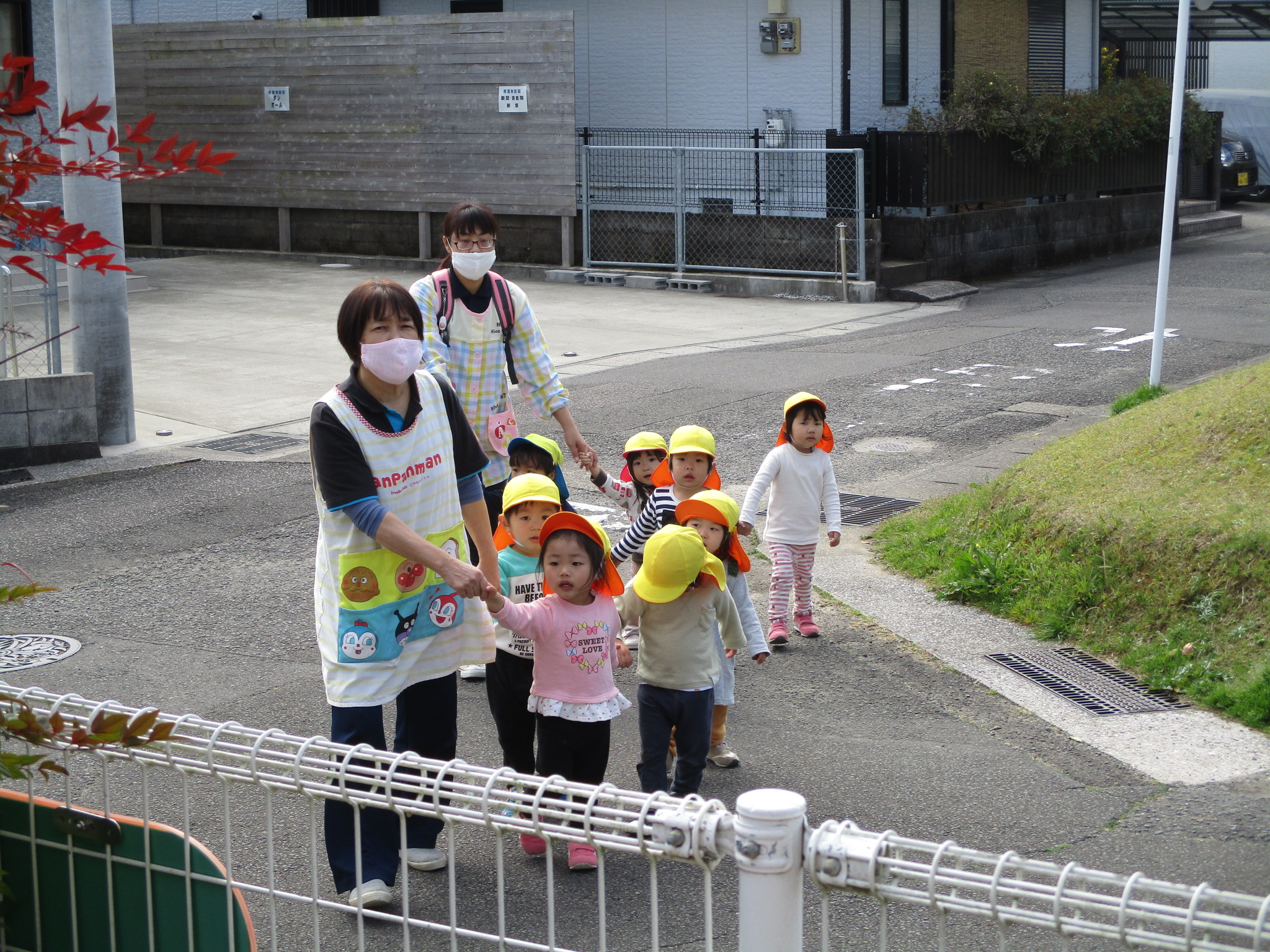 ひまわり組(2歳児)は、平和台公園まで歩いていきました。公園では最近覚えた”色付きおに”や公園の滑り台を滑ったり…とたくさん遊んで楽しい声が響いていました(*^▽^*)
