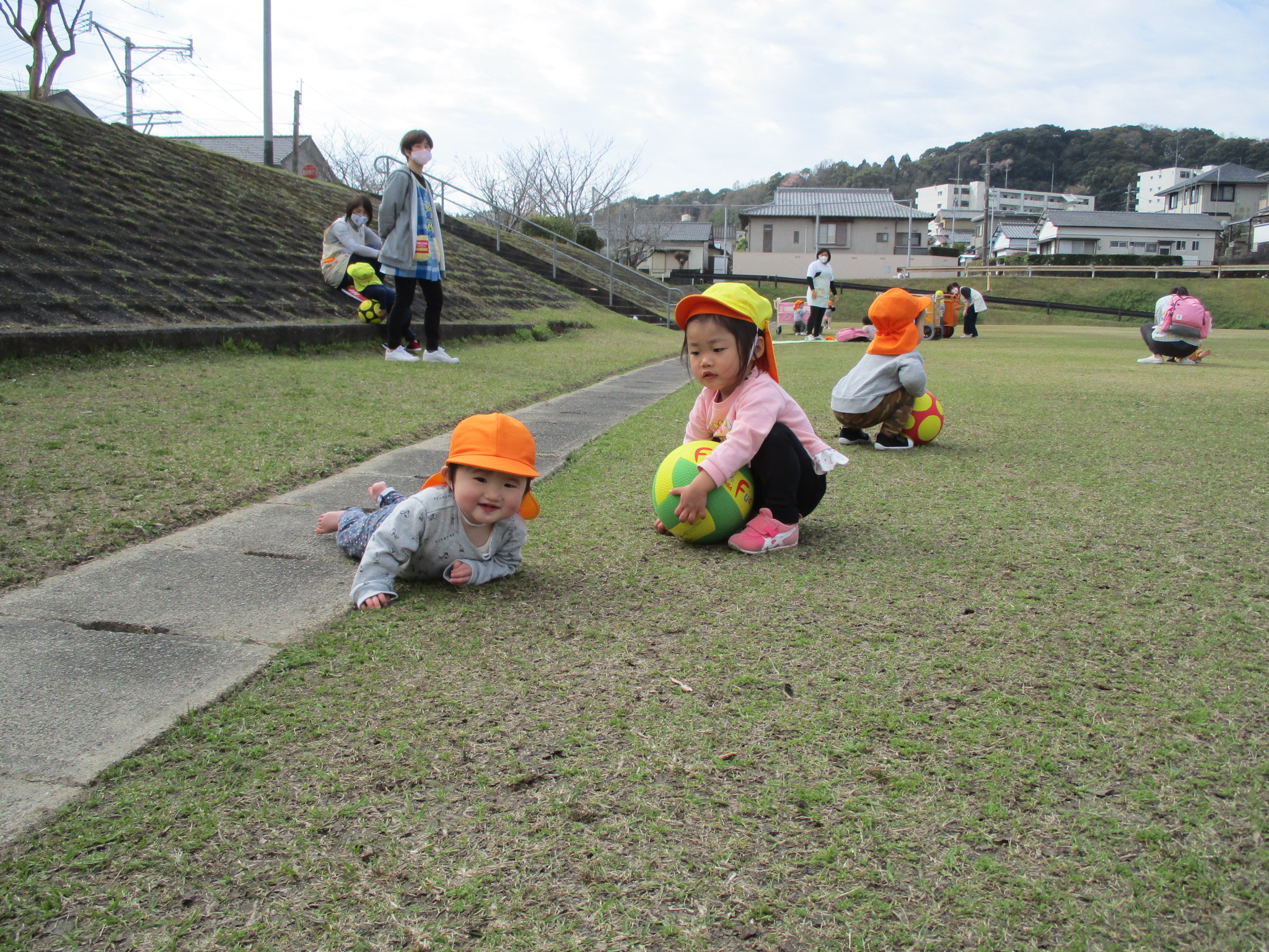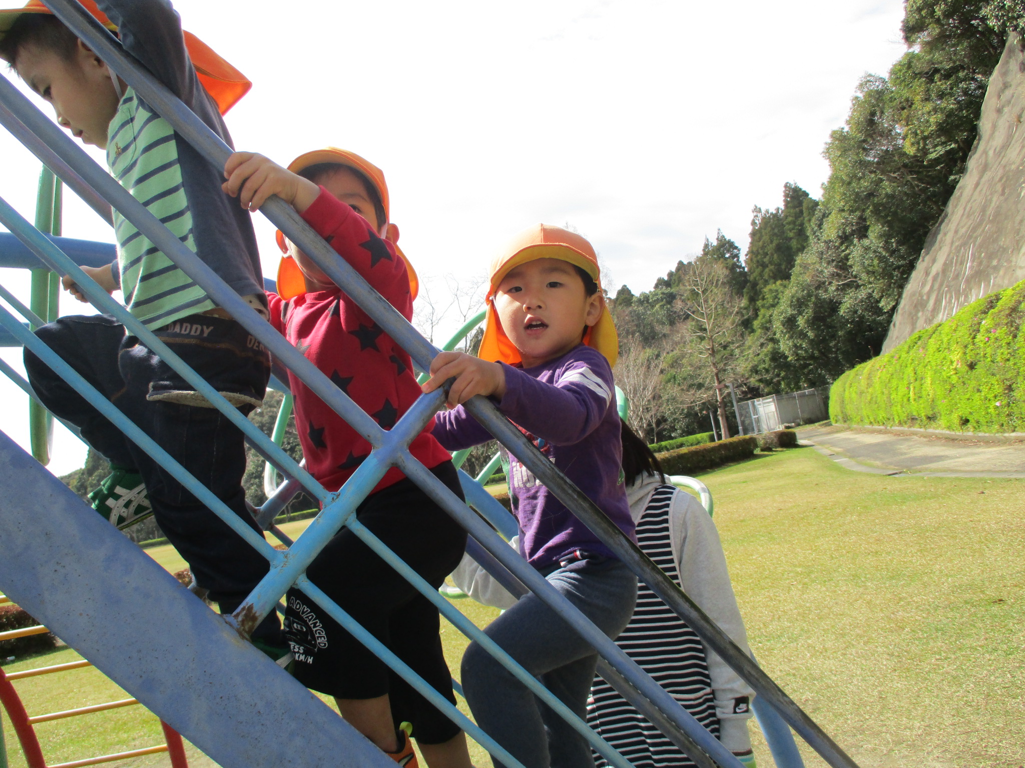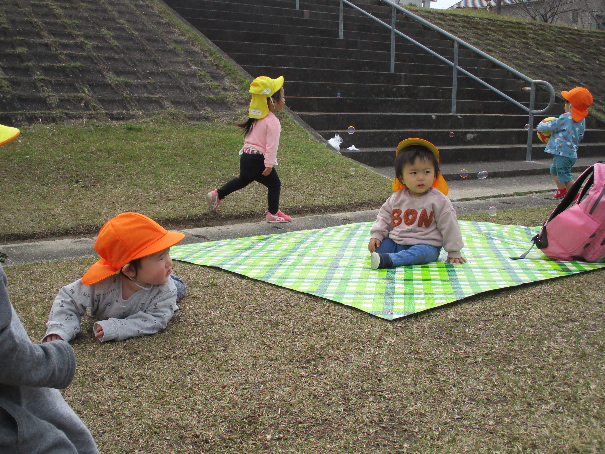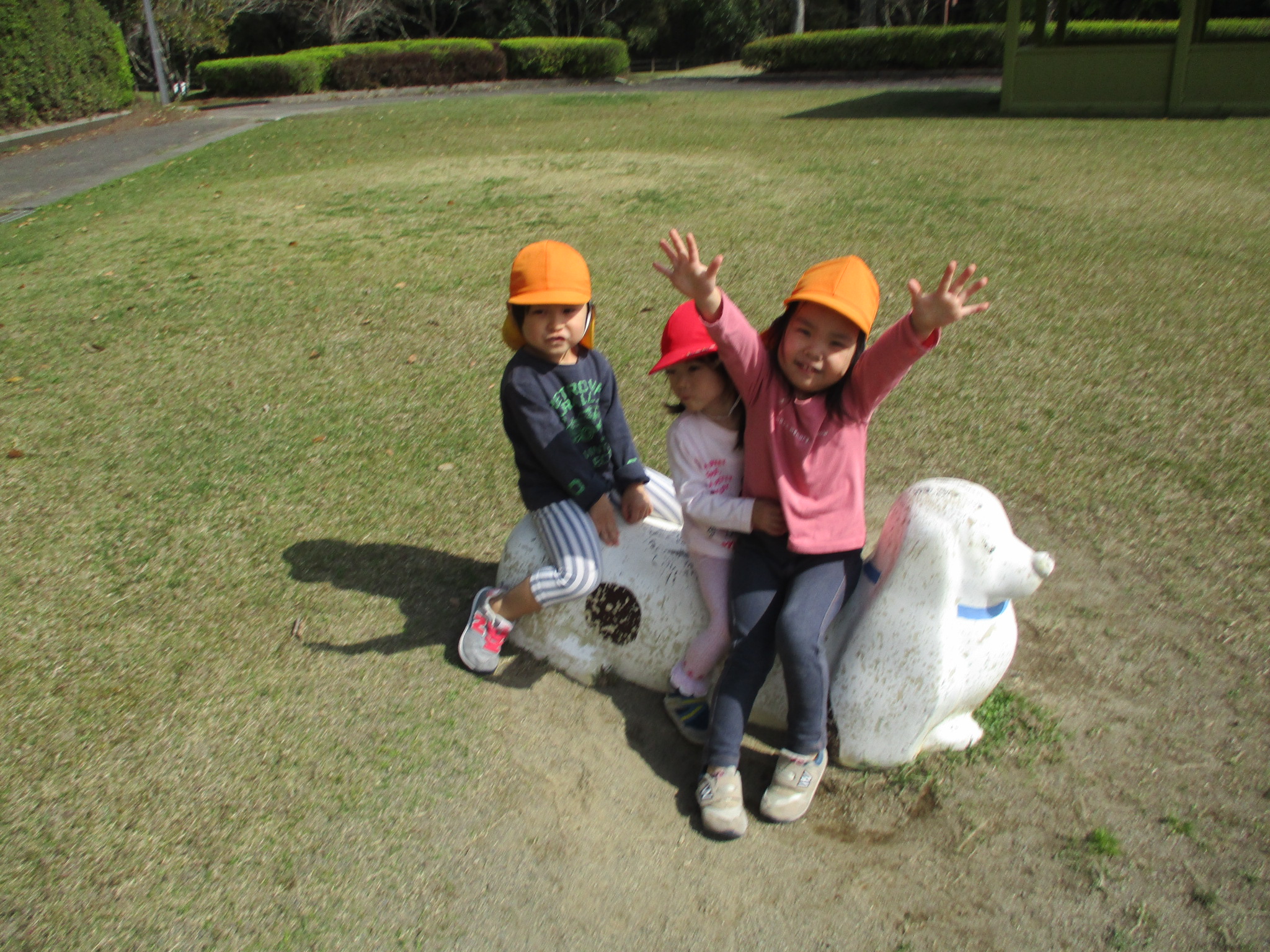 ひまわり組(2歳児)は、平和台公園まで歩いていきました。公園では最近覚えた”色付きおに”や公園の滑り台を滑ったり…とたくさん遊んで楽しい声が響いていました(*^▽^*)