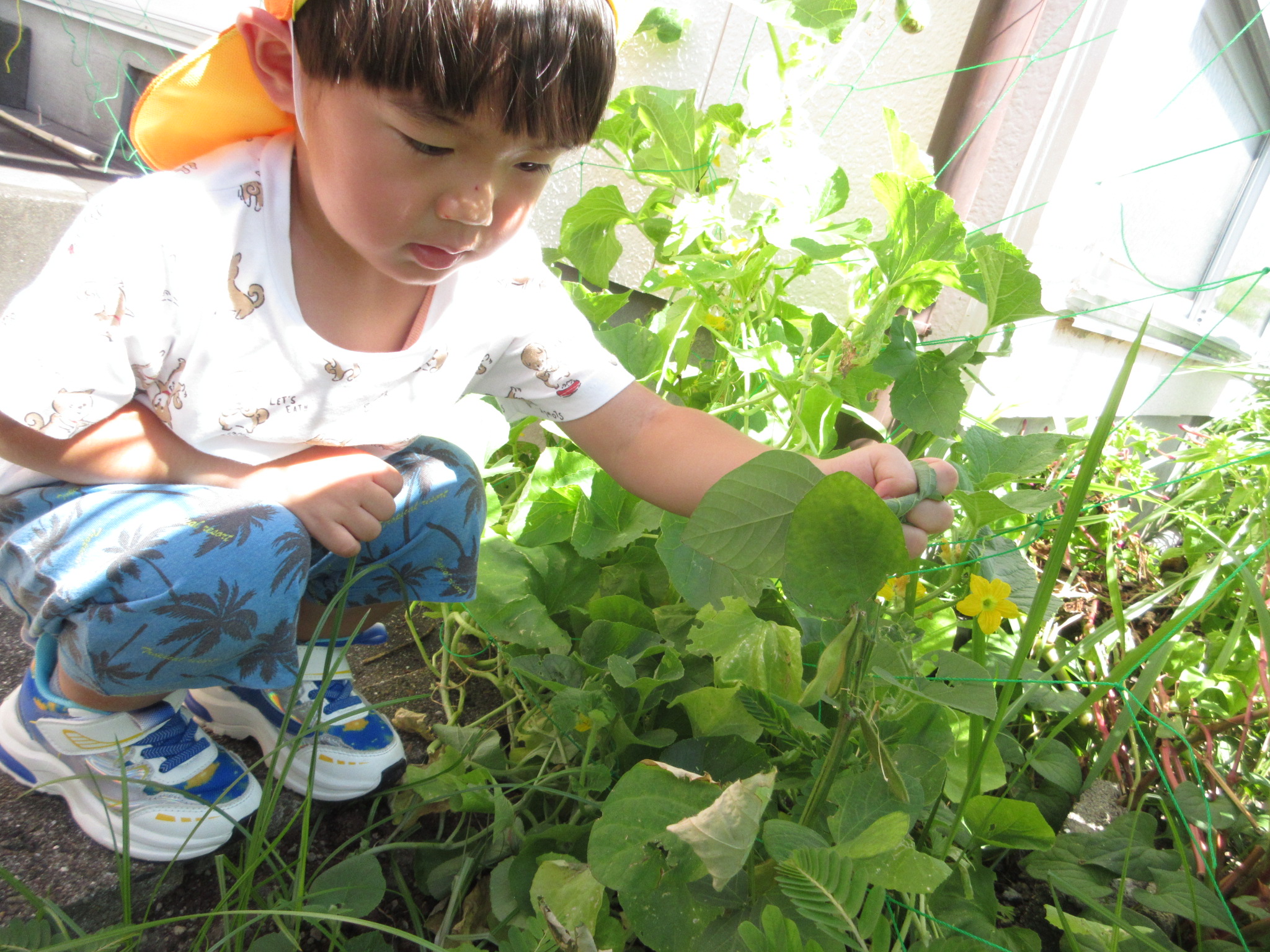 「なんか、毛があるね~」「ぷくぷくしてるよ」などと触れた感触を言いながらたくさん収穫できました。