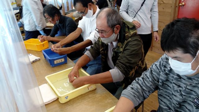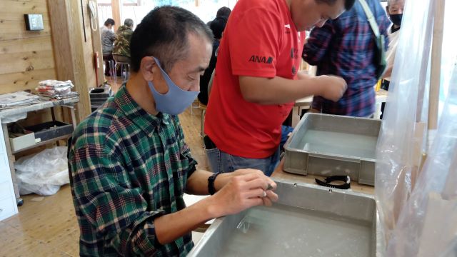 利用者さんの中には初めての人や何度か作ったことがあるという人もいましたが、皆さんきれいな勾玉を作ることが出来ていました。