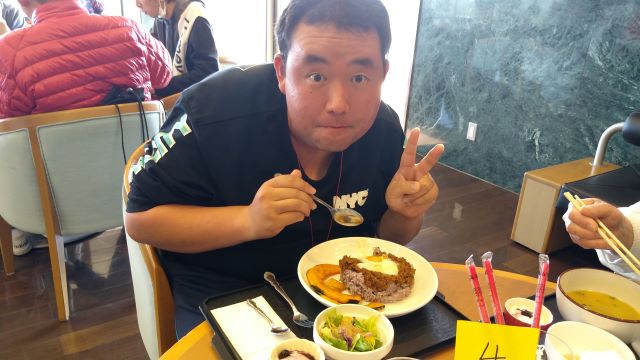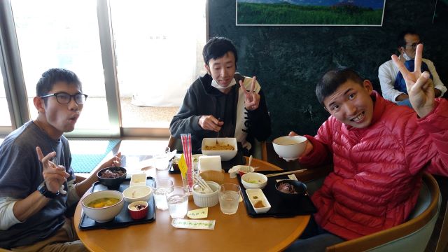勾玉を作った後は、博物館3階のレストラン“眺”で昼食を取りました。