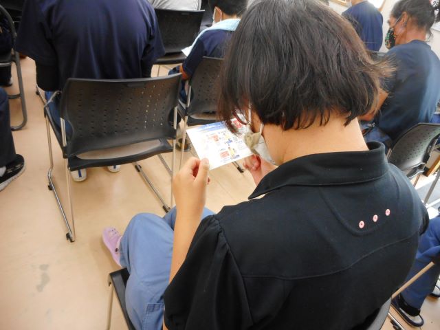 皆さん熱心に実習に取り組まれており、ご利用者、職員、改めて自分の立場を考えさせられました。