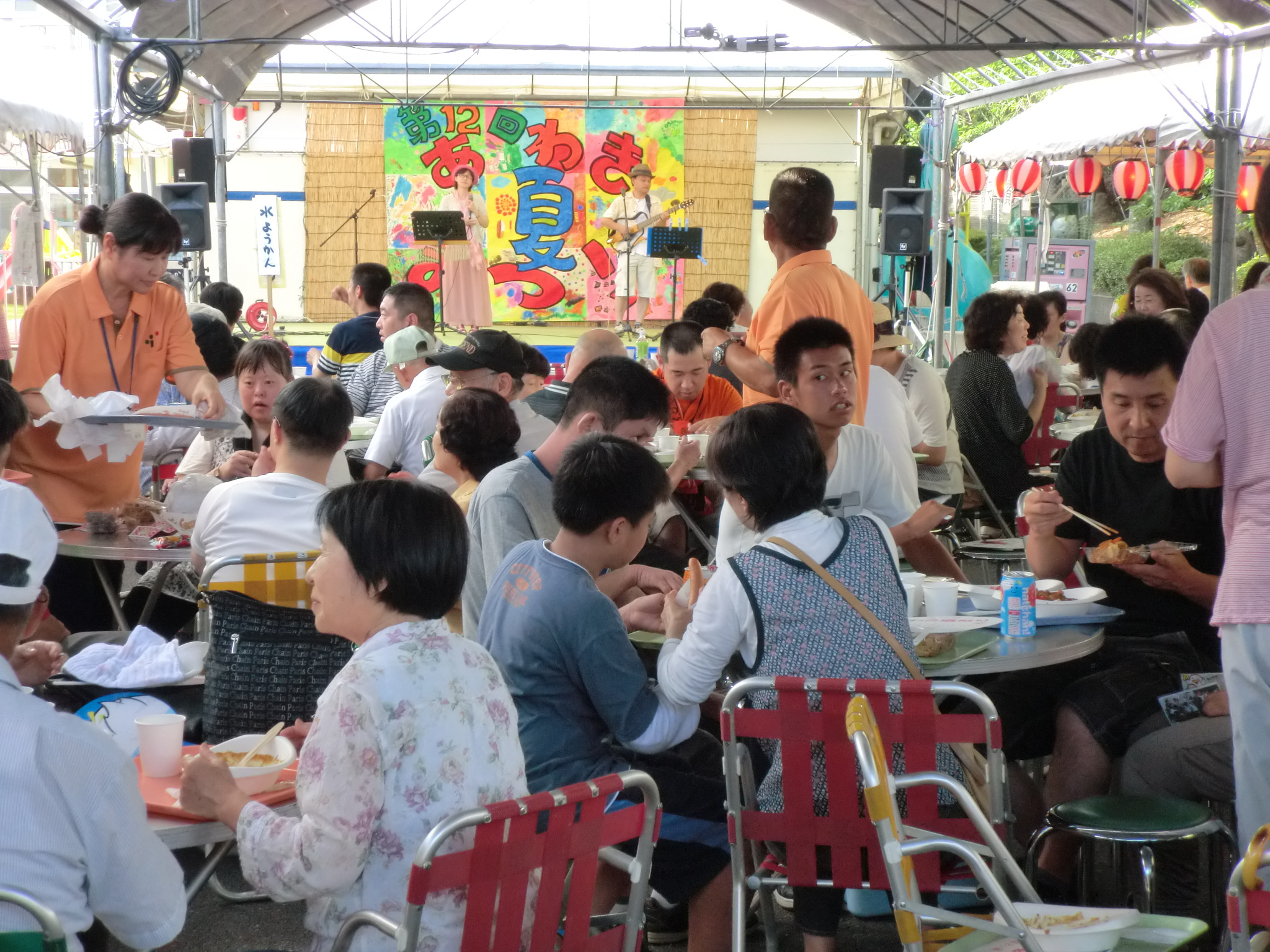 楽しかった『あわき夏祭り』 7/13(土)に「第12回あわき夏祭り」を開催しました。天候にも恵まれ、総勢231名が参加。多くの保護者・来賓・ボランティアの参加・協力のもとにご利用者が主役の素晴らしい祭りとなりみんなで夏の楽しいひと時を過ごしました。