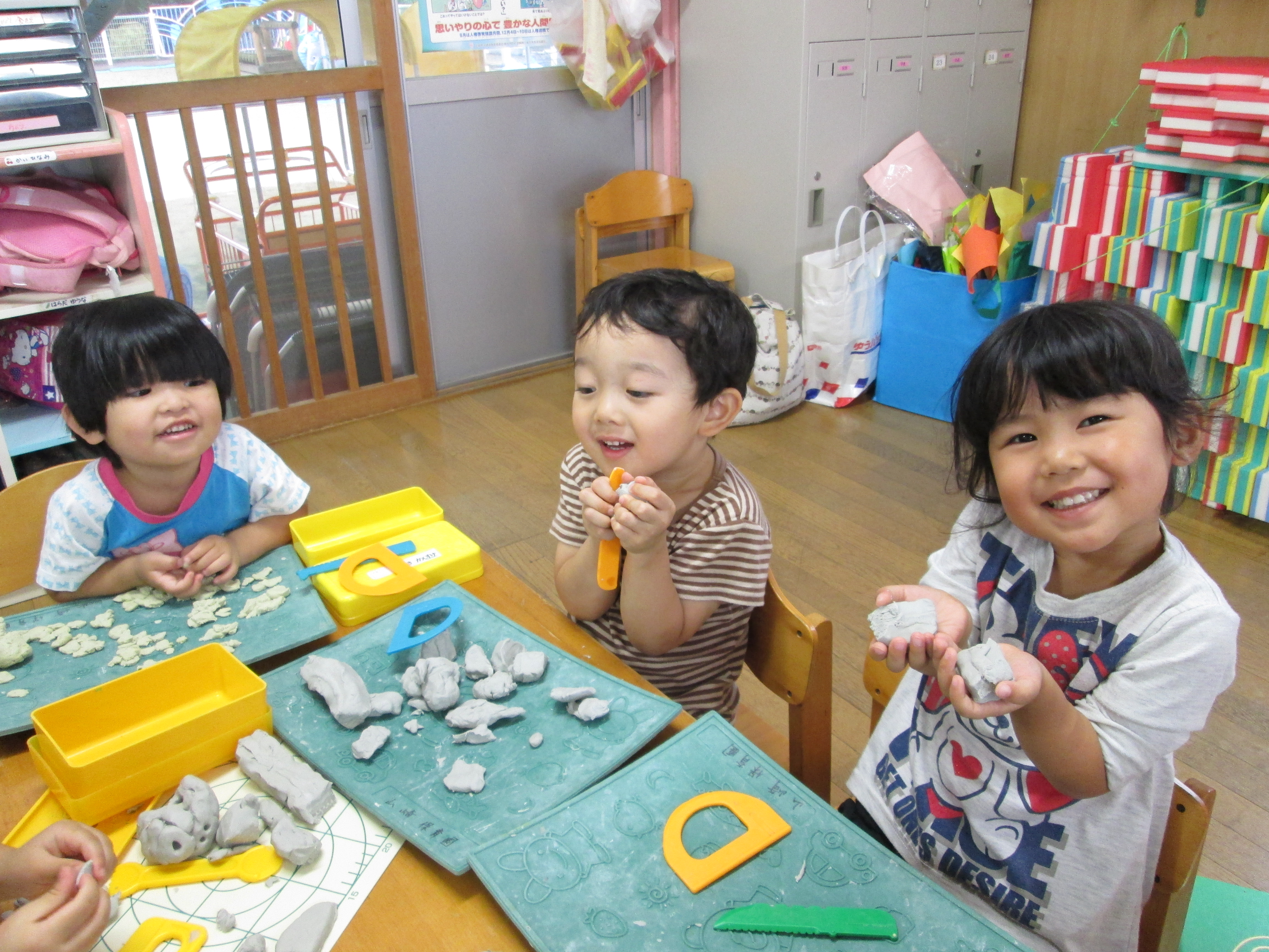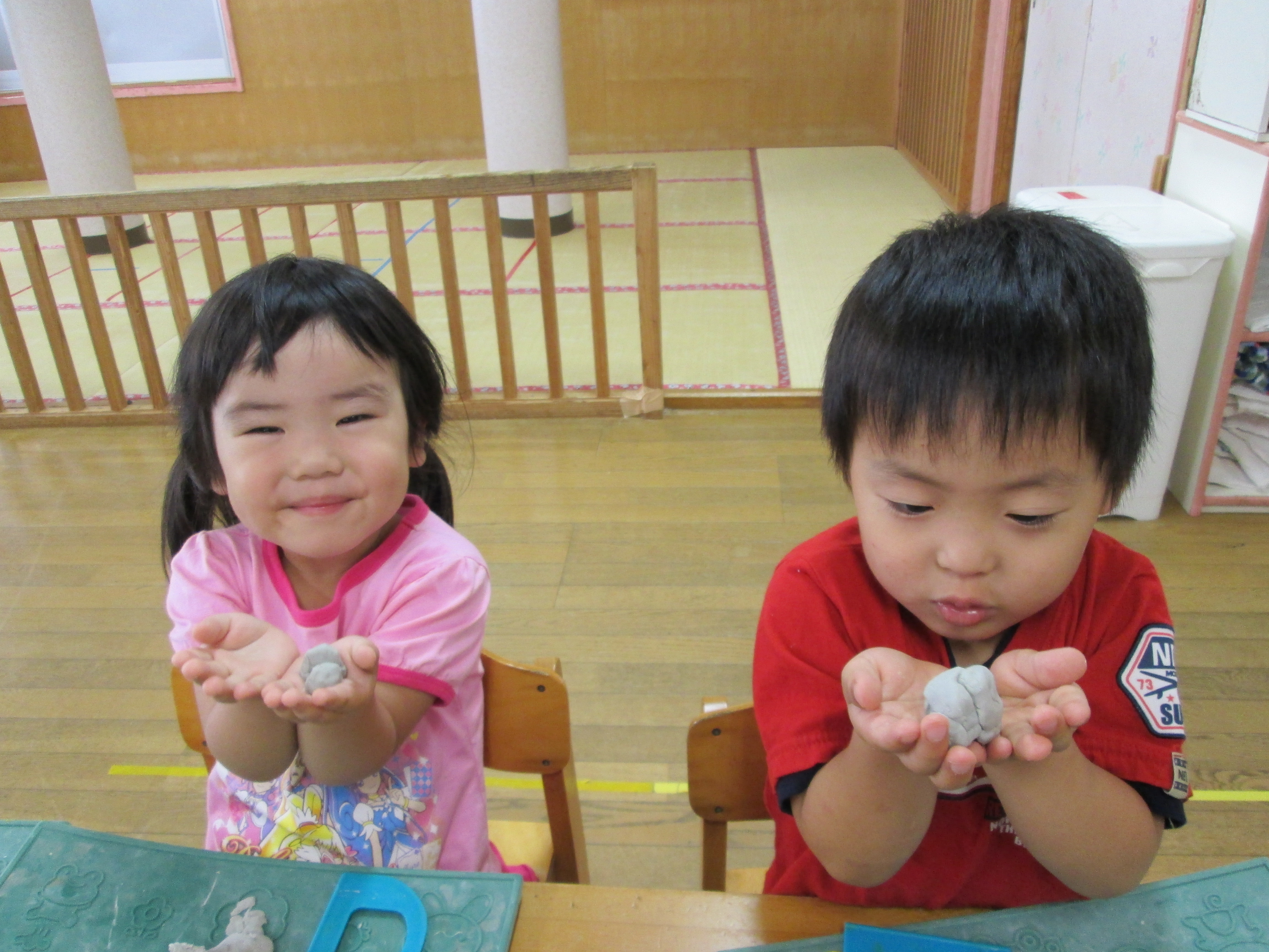 こねこね・・・ちぎったり丸めたり、何ができたかな?