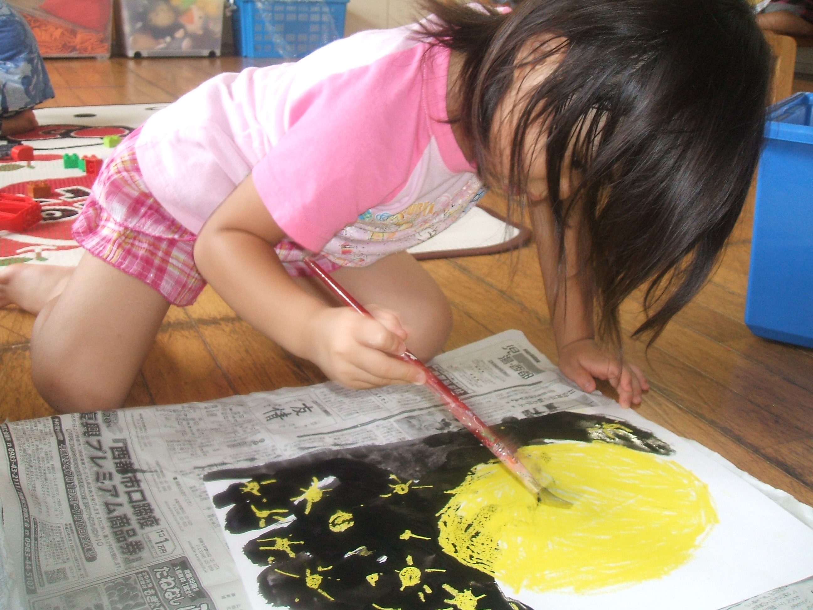 お月様とお星様を描いて、夜空を表現しましたよ。