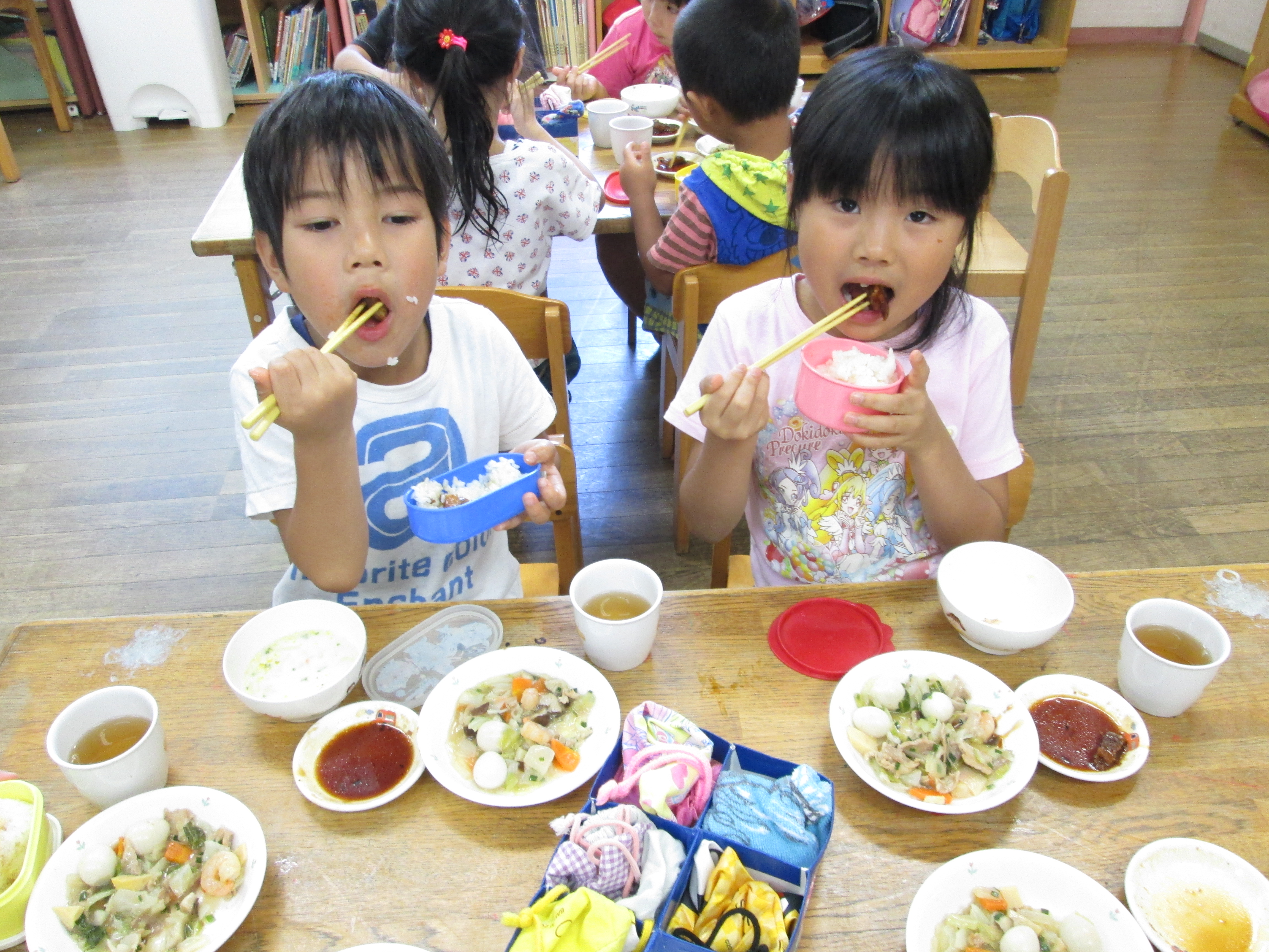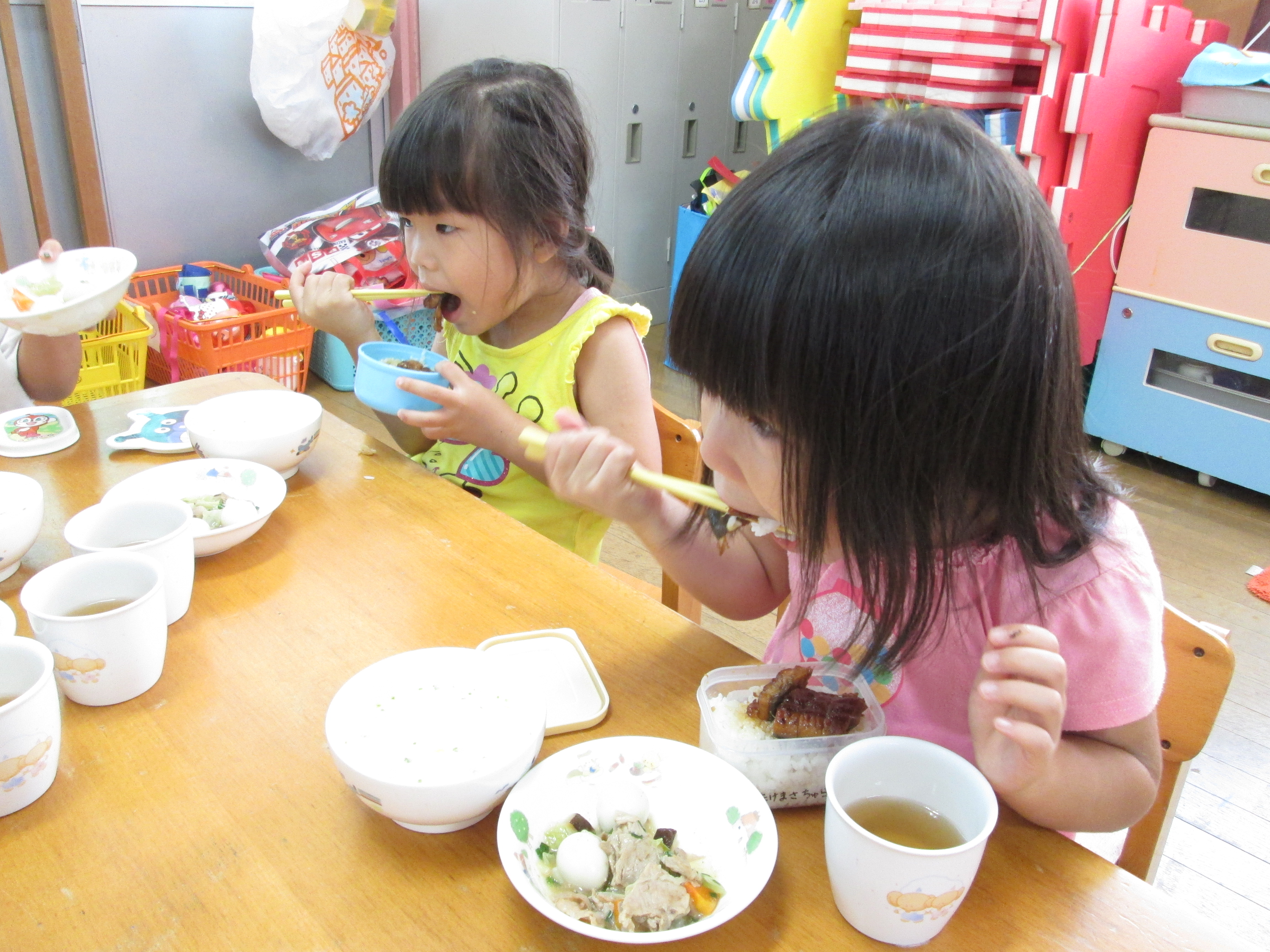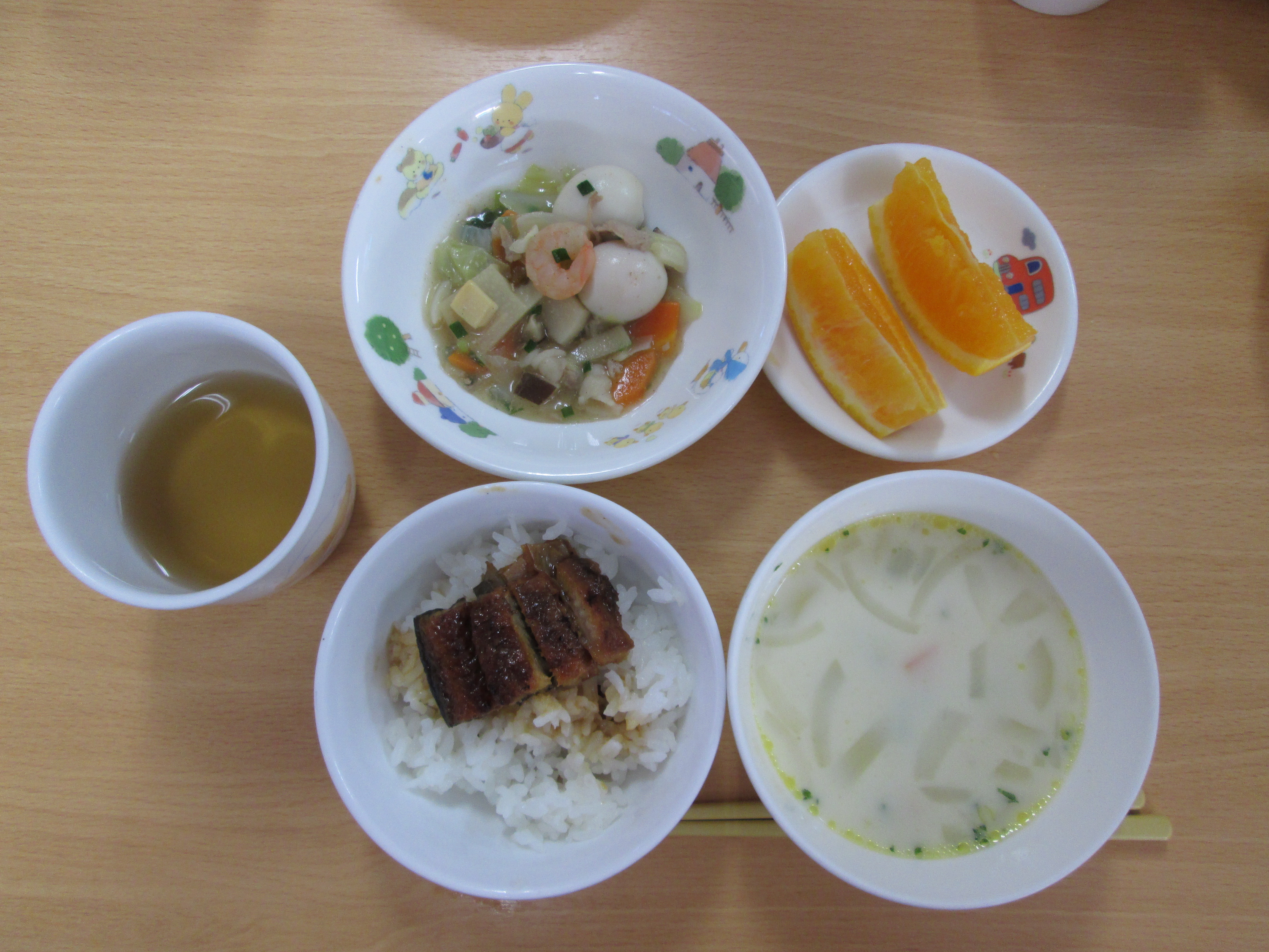 うなぎ 7月22日(月) 今日は、土用の丑の日でしたね。 今年も、大森淡水様より『うなぎ』をいただきました。(毎年ありがとうございます。) 給食の時間になると、各部屋から『美味しい~♪』の声がとびかっていましたよ。 うなぎを食べて、ますますパワフルになった子ども達でした。
