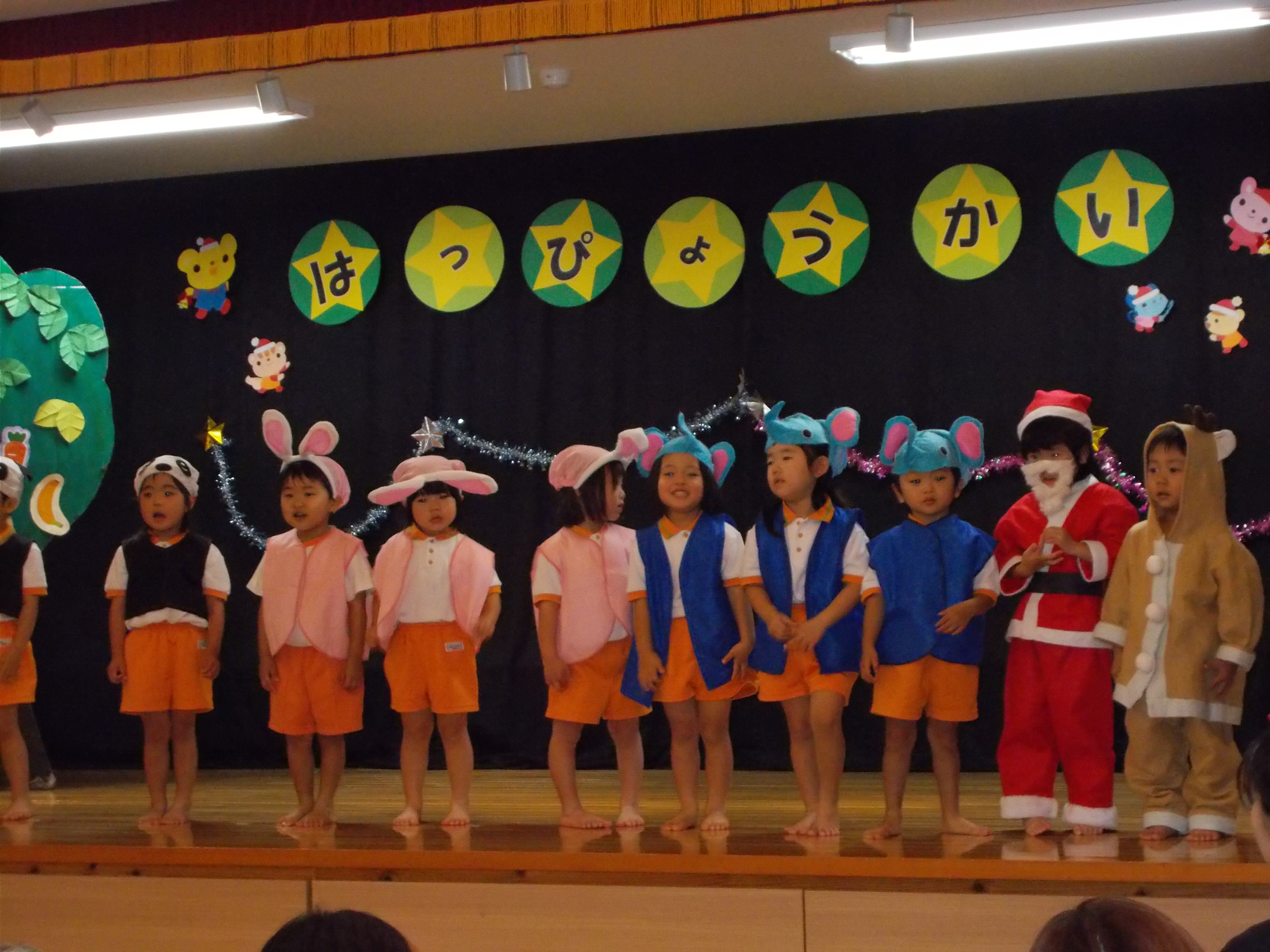 クリスマス発表会 12月21日(土) クリスマス発表会が行われました。 劇、ダンス、合奏と毎日練習してきたことを発表しました。子どもたちは素敵な衣装にテンションが上がり緊張した表情を見せながら元気よく演じてくれました。 終了後はサンタクロースが登場しクリスマスプレゼントをもらいました。