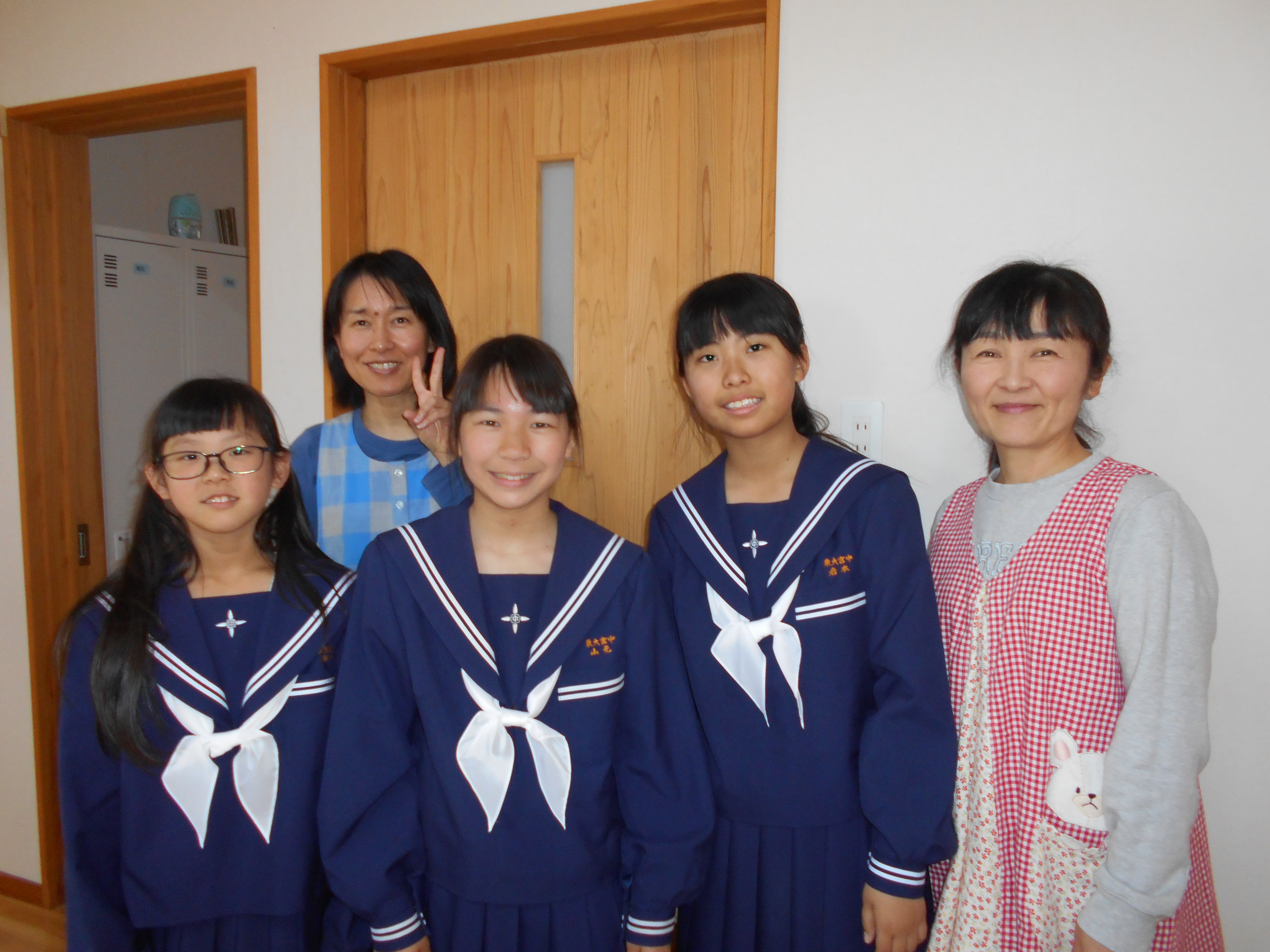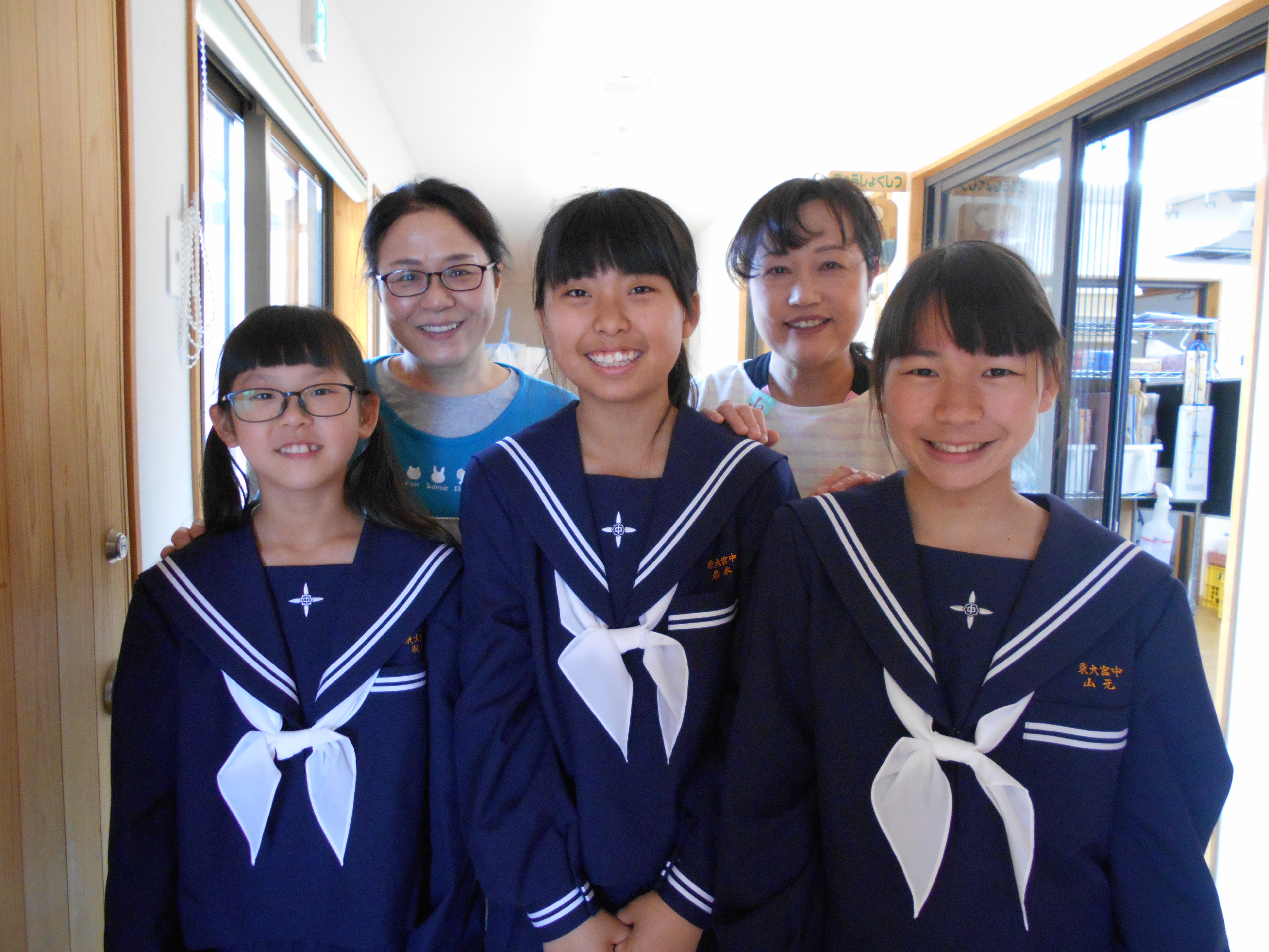 中学入学おめでとう 4月9日(木) 卒園児が中学校に入学したことを報告がてら遊びに来てくれました。 幼かった子どもたちが、礼儀正しく挨拶をしてくれ大変嬉しく思いました。 これからも素敵な笑顔で勉強や部活動等頑張って下さいね。