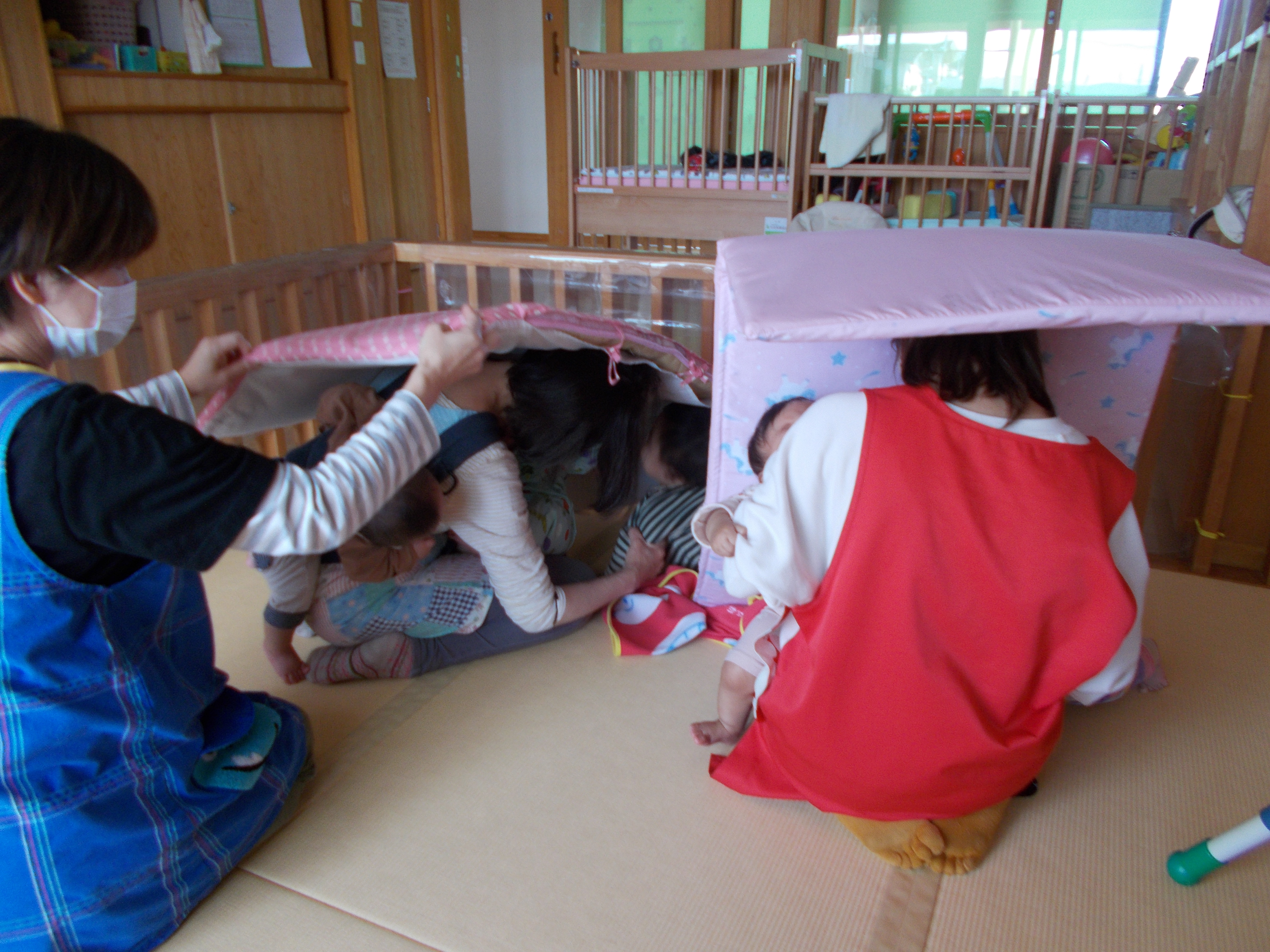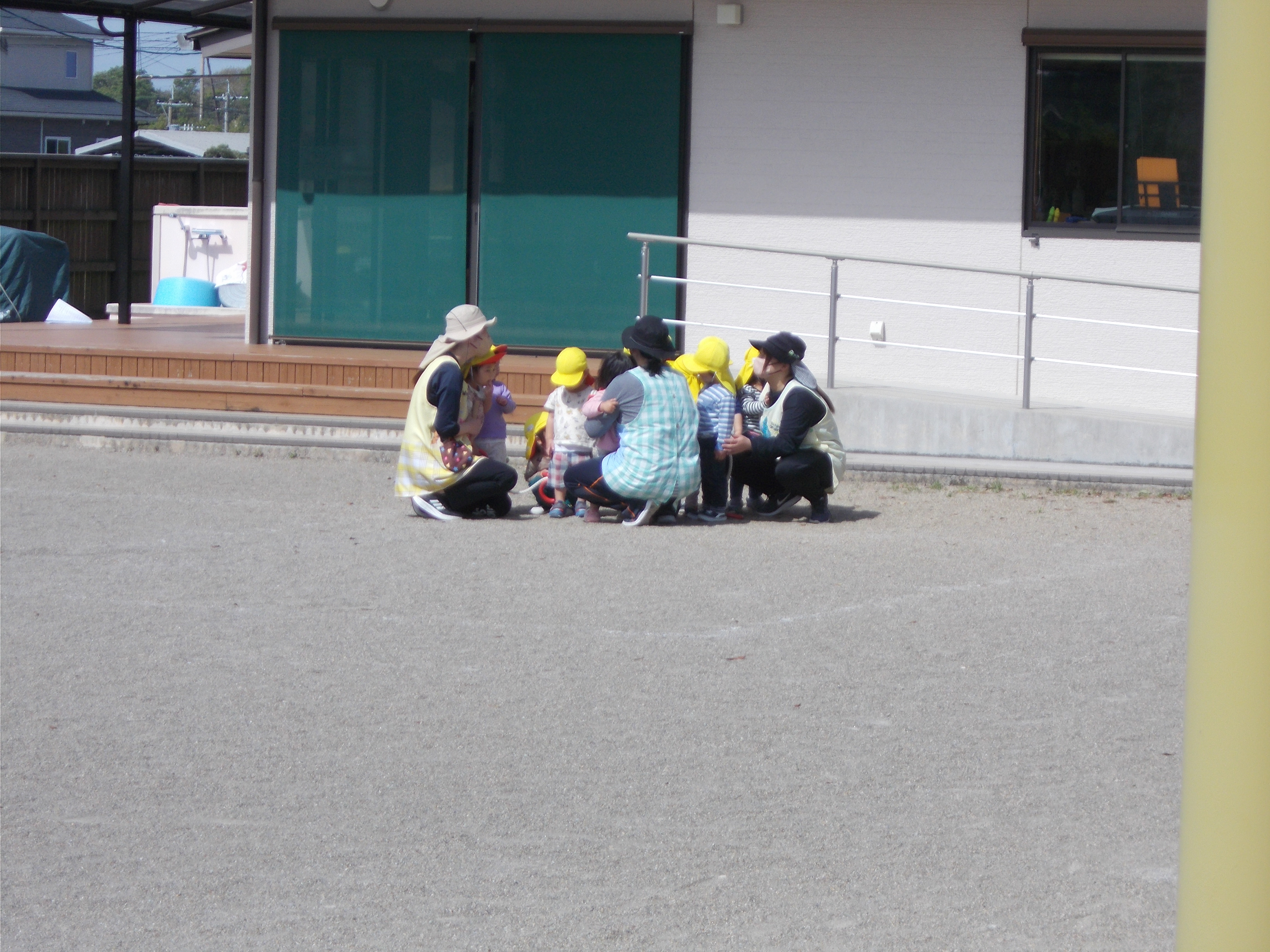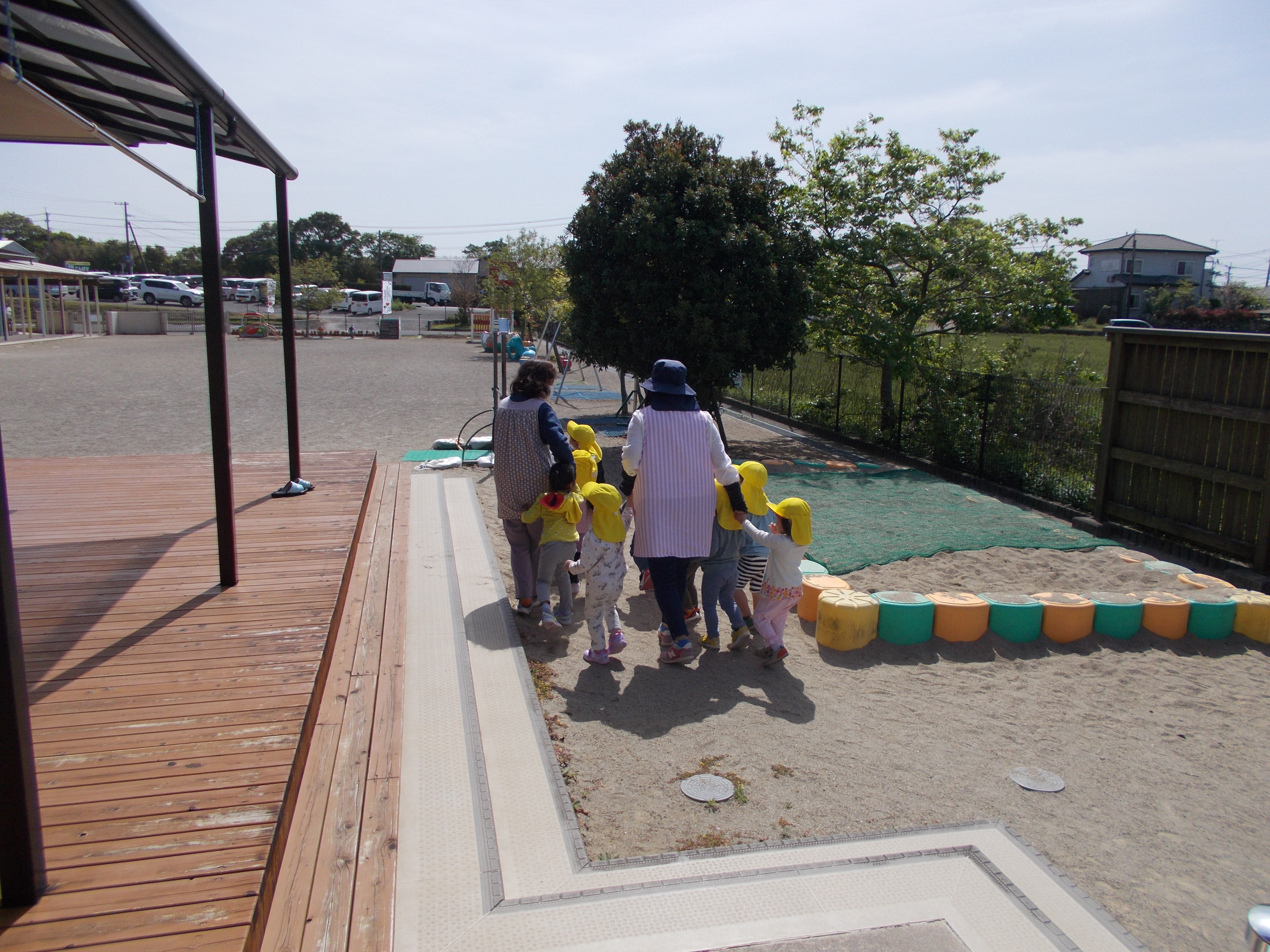 進級して、部屋や担任が変わり3月までのようにスムーズに避難できるのか心配しましたが、一斉放送と保育士の話しをしっかり聞くことが出来ていたので、戸惑うことなく避難できていました。