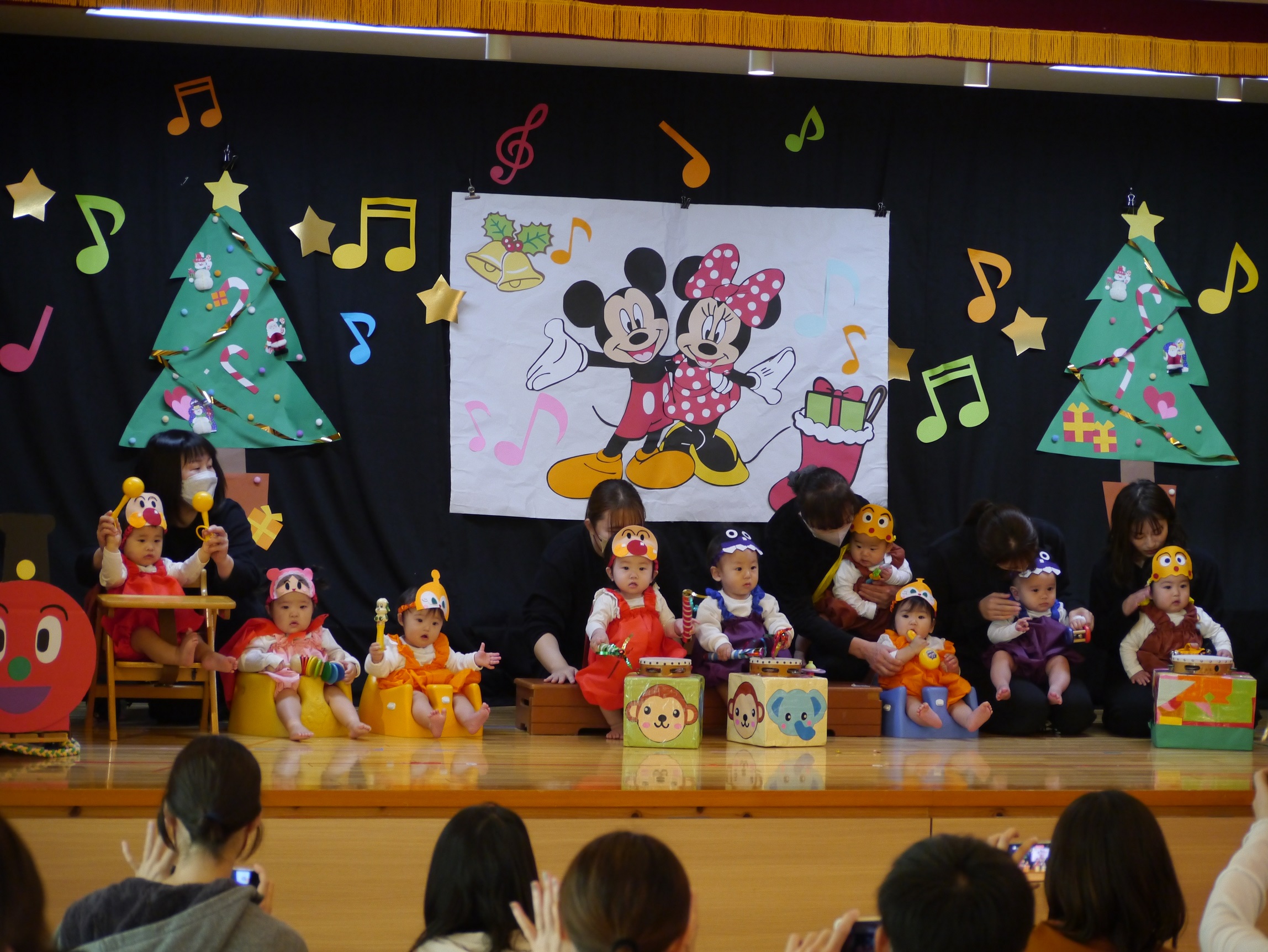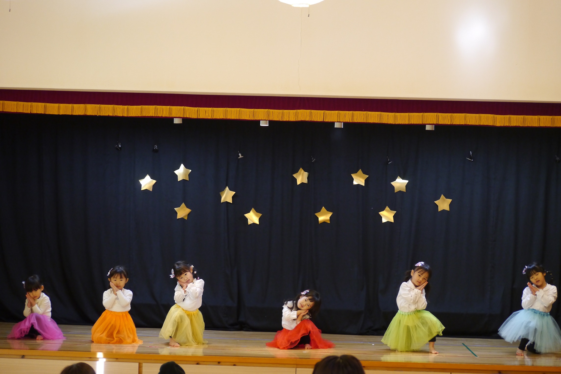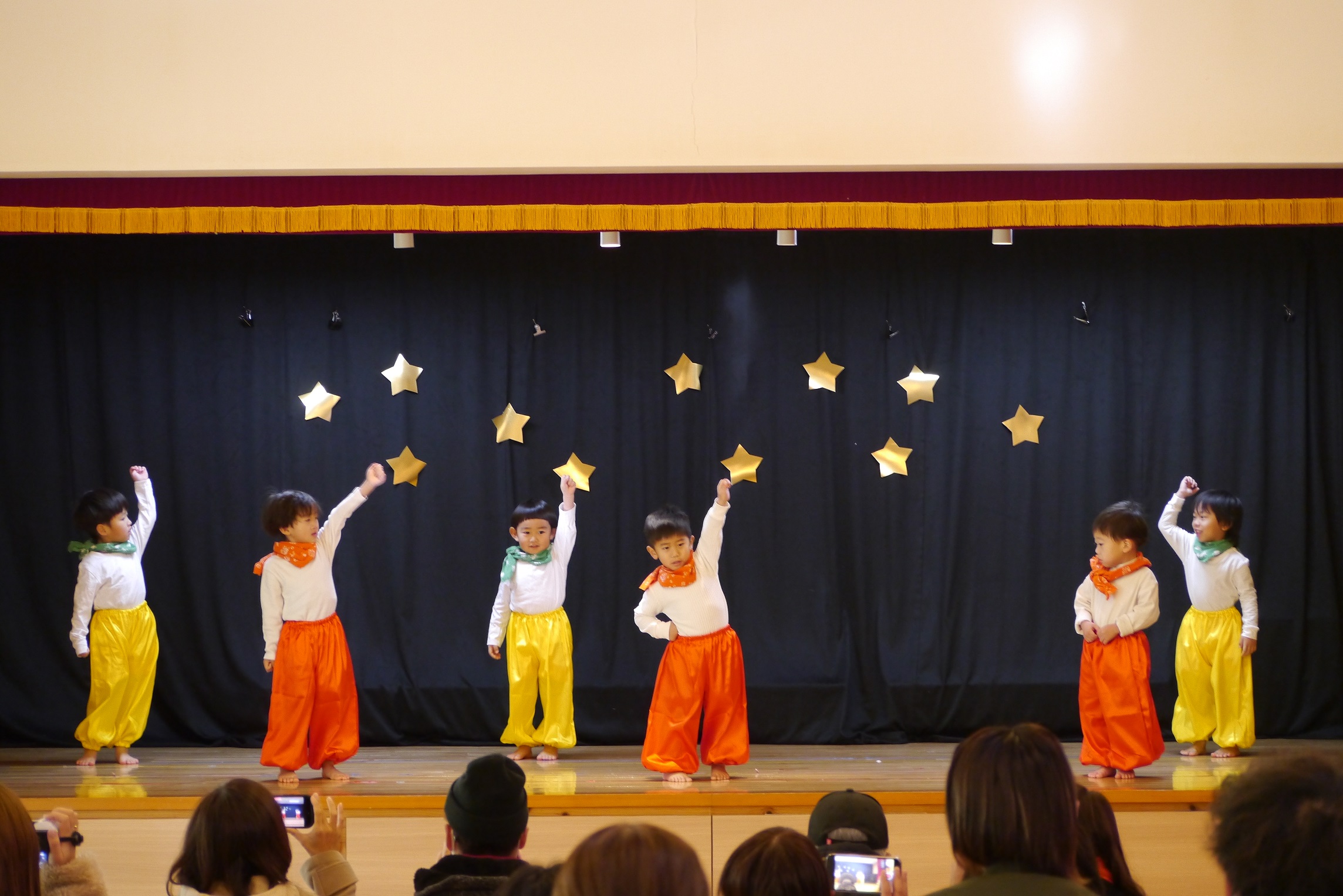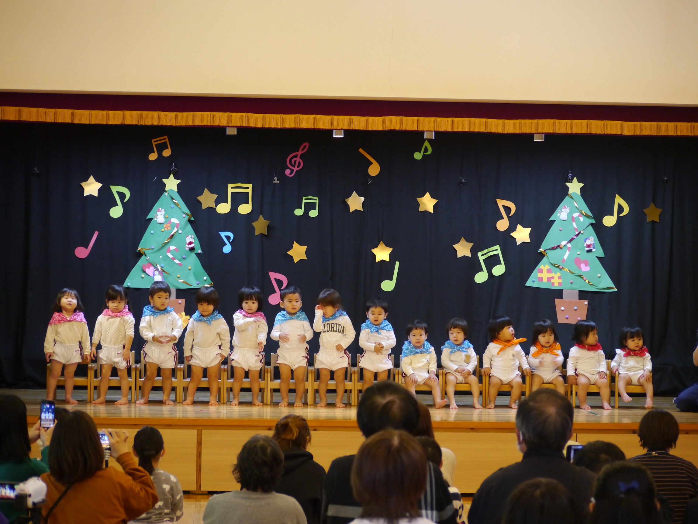 クリスマス発表会 12月16日(土)3歳未満児発表会 12月23日(土)3歳以上児発表会 かわいい衣装やかっこいい衣装に身を包み、大好きな家族の前でダンスや劇を楽しそうに披露する子ども達でした。 ドキドキして緊張のあまり、セリフがうまく言えないと幕が閉まった裏側で「どうした!いつも通りで大丈夫やっちゃが!」と励まし合う姿が見られ、子ども達は沢山の体験を通して心も成長しているんだな~と、感動しました。