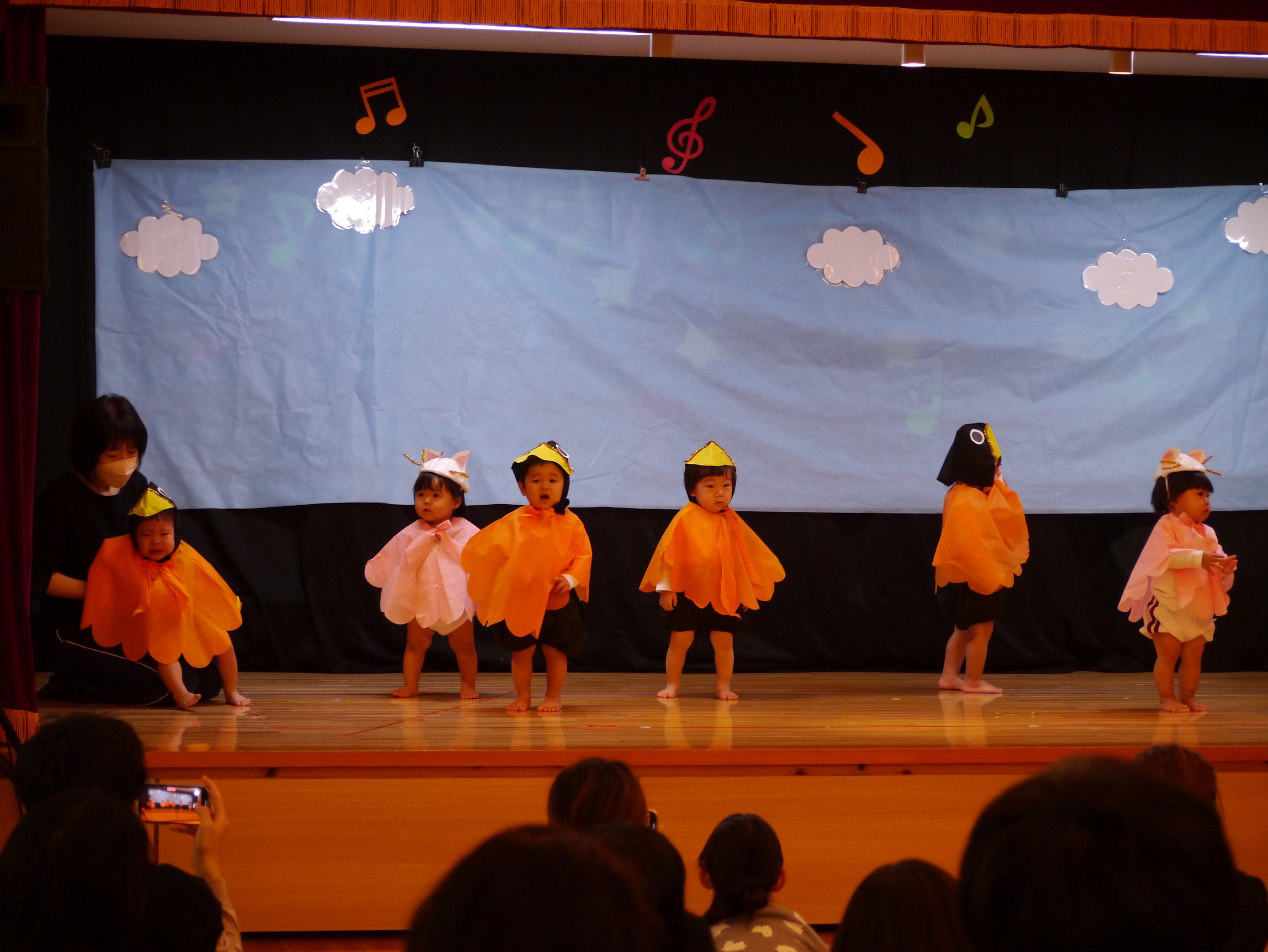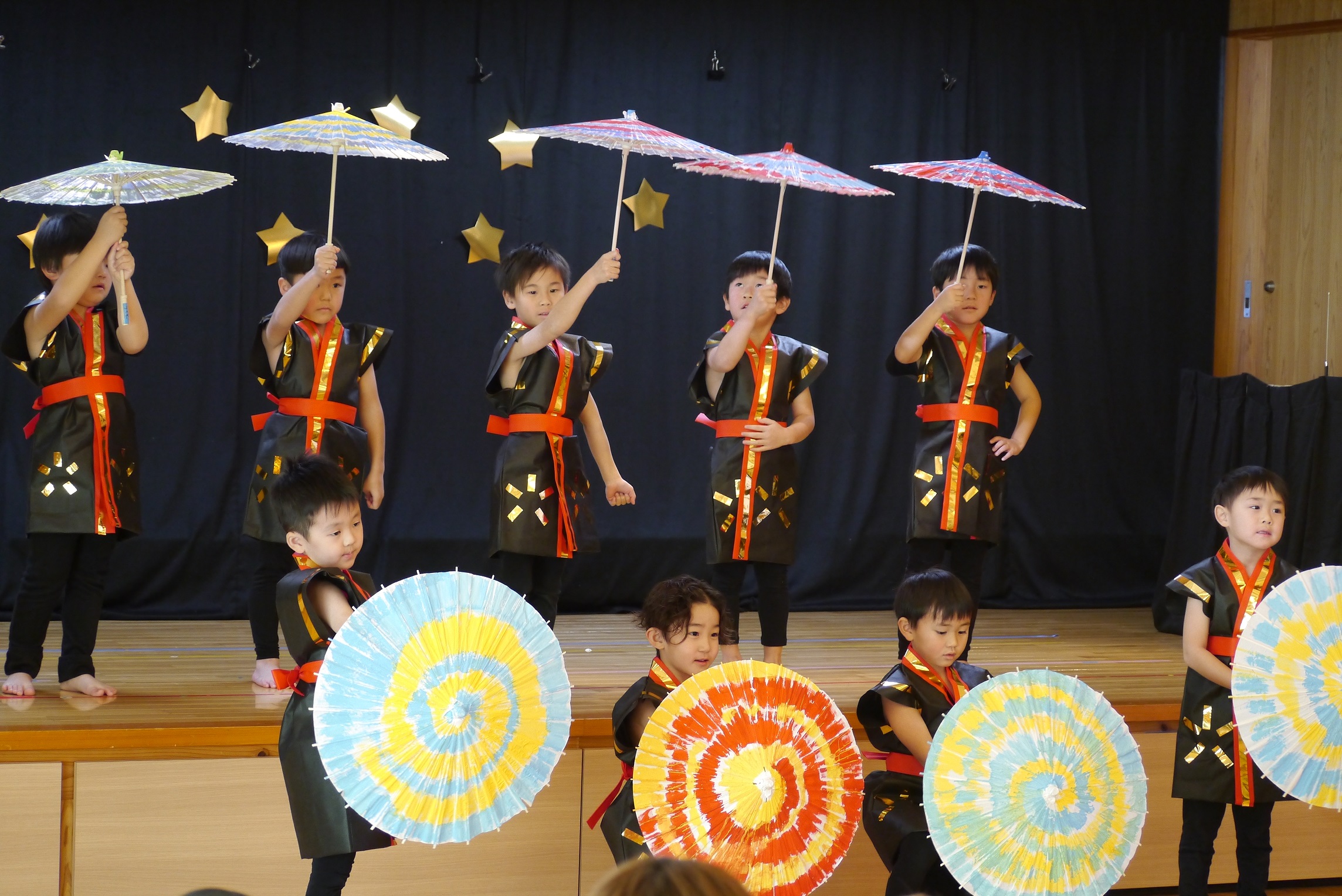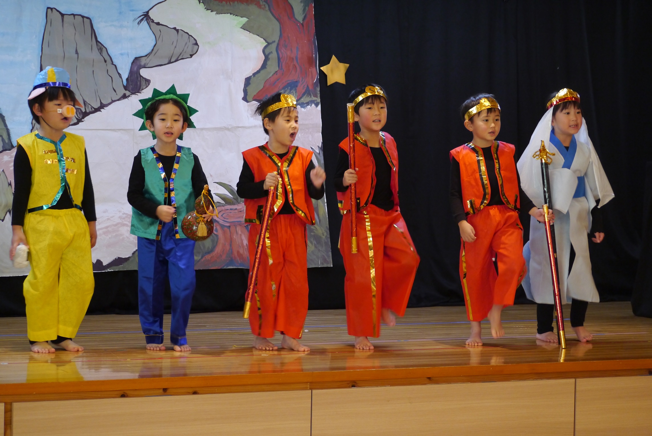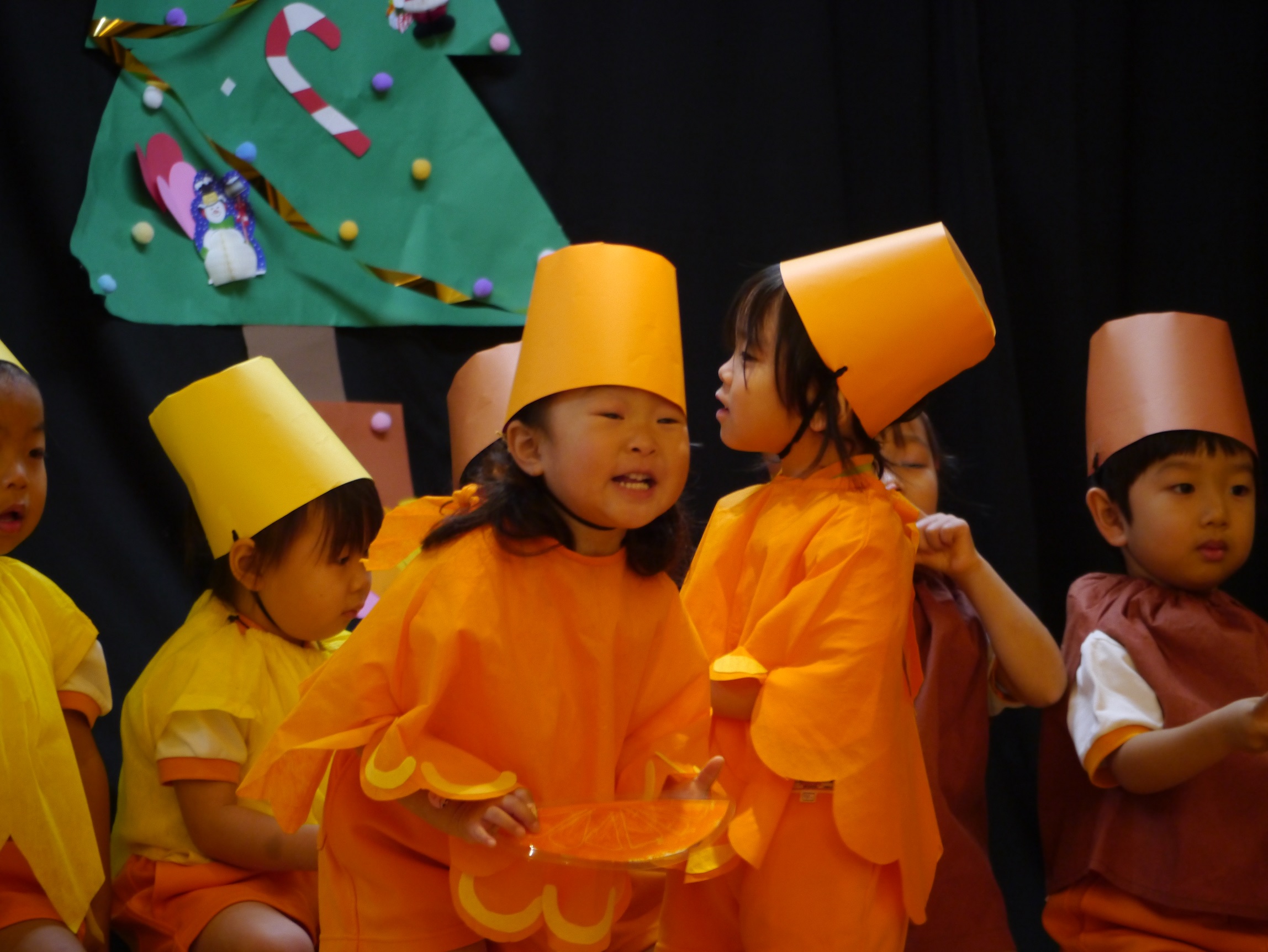 クリスマス発表会 12月16日(土)3歳未満児発表会 12月23日(土)3歳以上児発表会 かわいい衣装やかっこいい衣装に身を包み、大好きな家族の前でダンスや劇を楽しそうに披露する子ども達でした。 ドキドキして緊張のあまり、セリフがうまく言えないと幕が閉まった裏側で「どうした!いつも通りで大丈夫やっちゃが!」と励まし合う姿が見られ、子ども達は沢山の体験を通して心も成長しているんだな~と、感動しました。