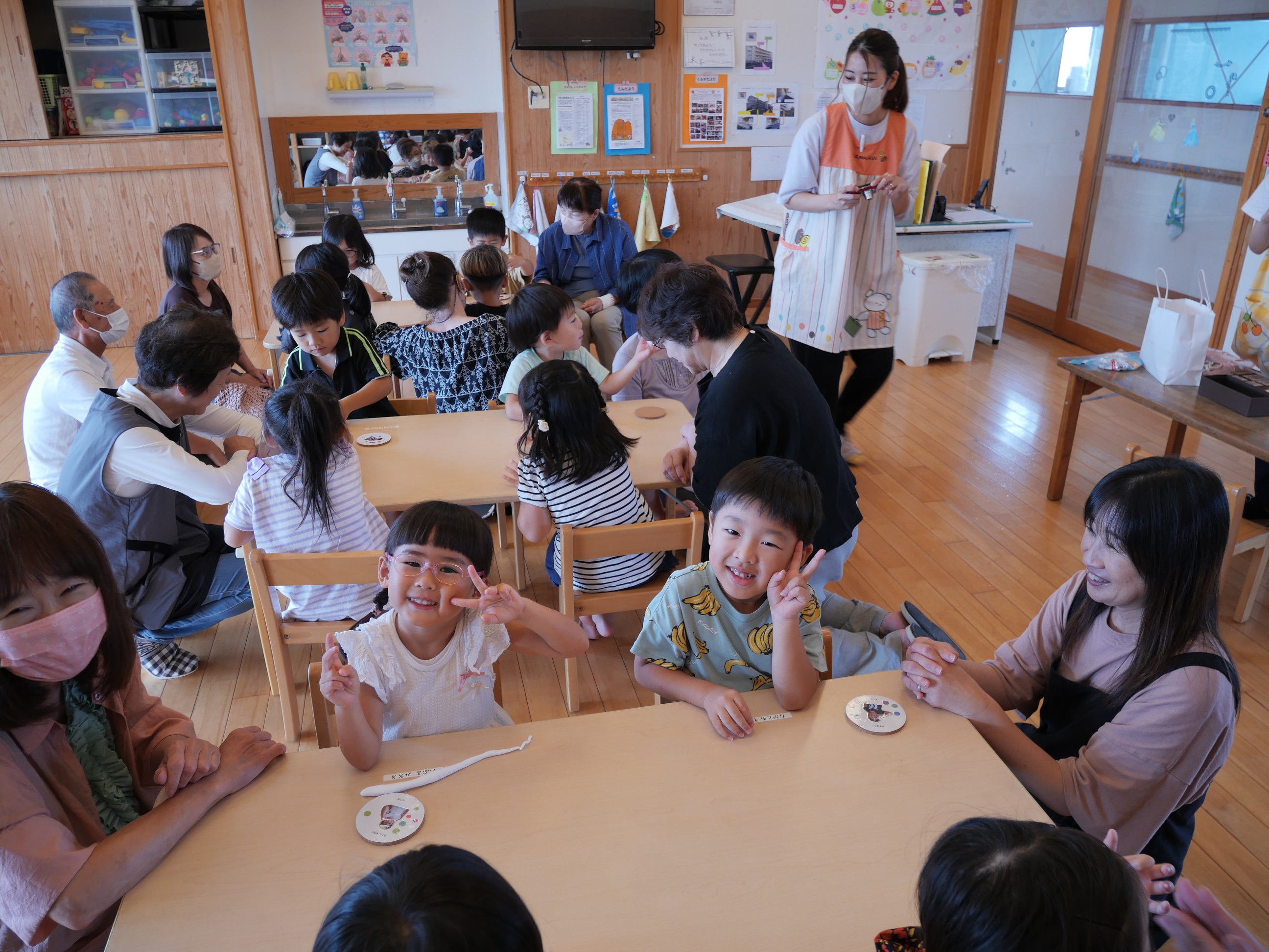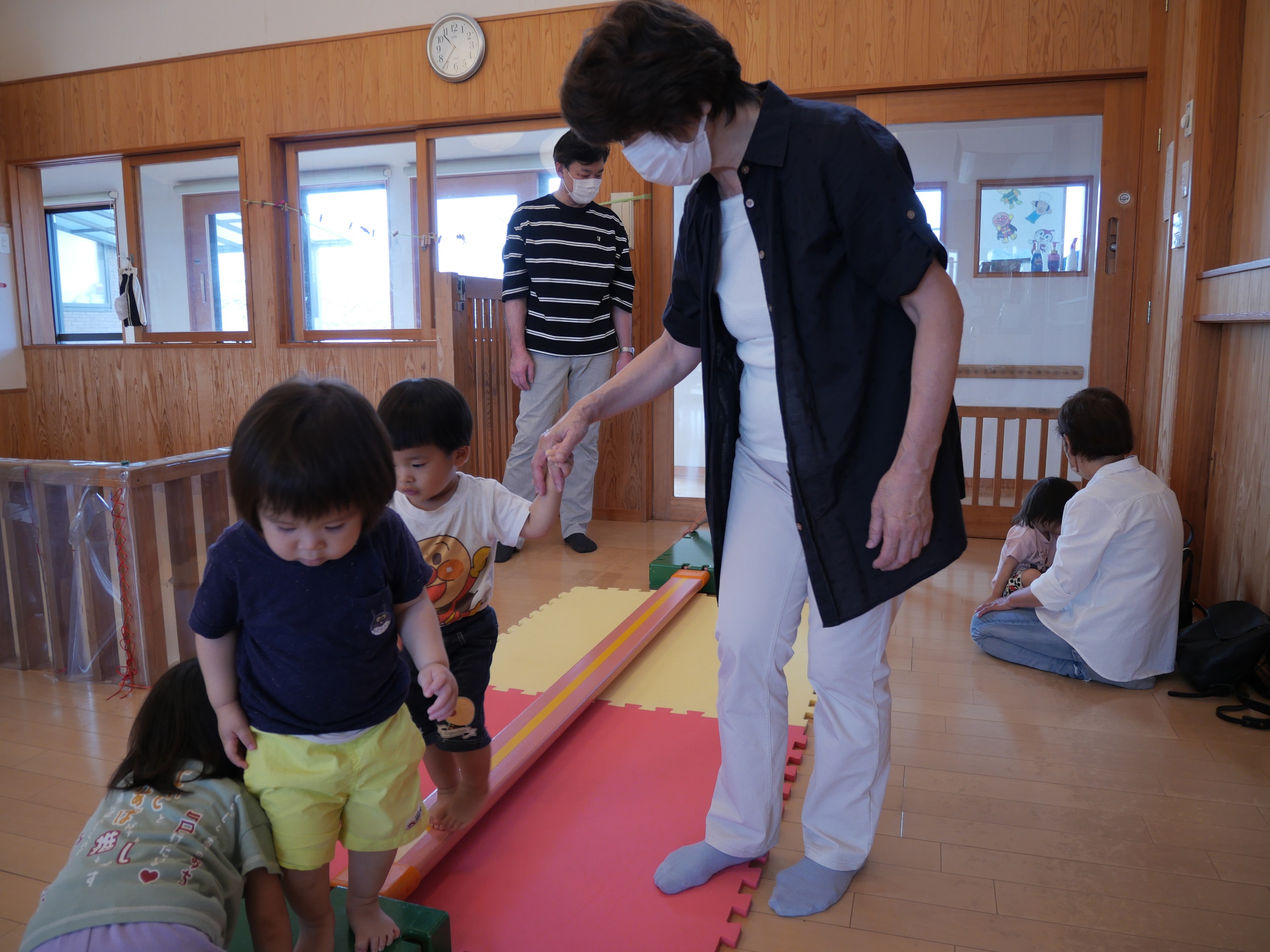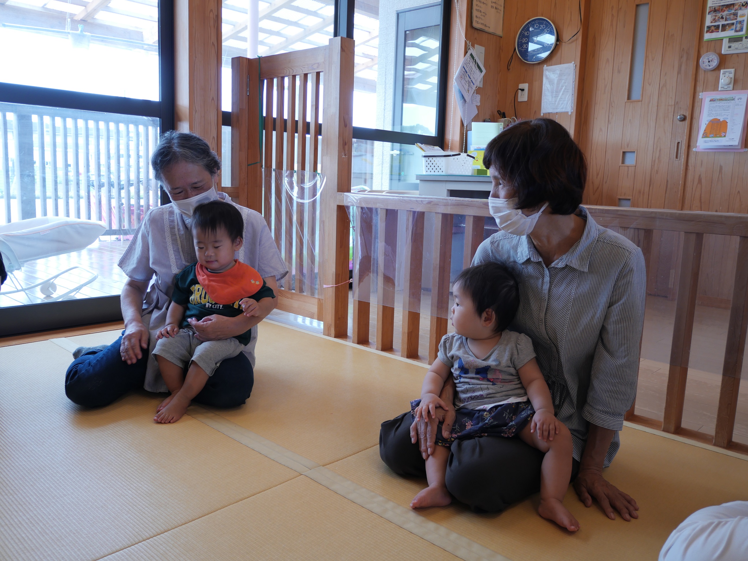 今日は大すきなおじいちゃん、おばあちゃんが来園され一緒に歌をうたったり、遊んだり、製作をして楽しみました。おじいちゃん、おばあちゃんの顔もニコニコ。園児たちも「見ててね」と得意気です。また一緒にあそぼうね♪