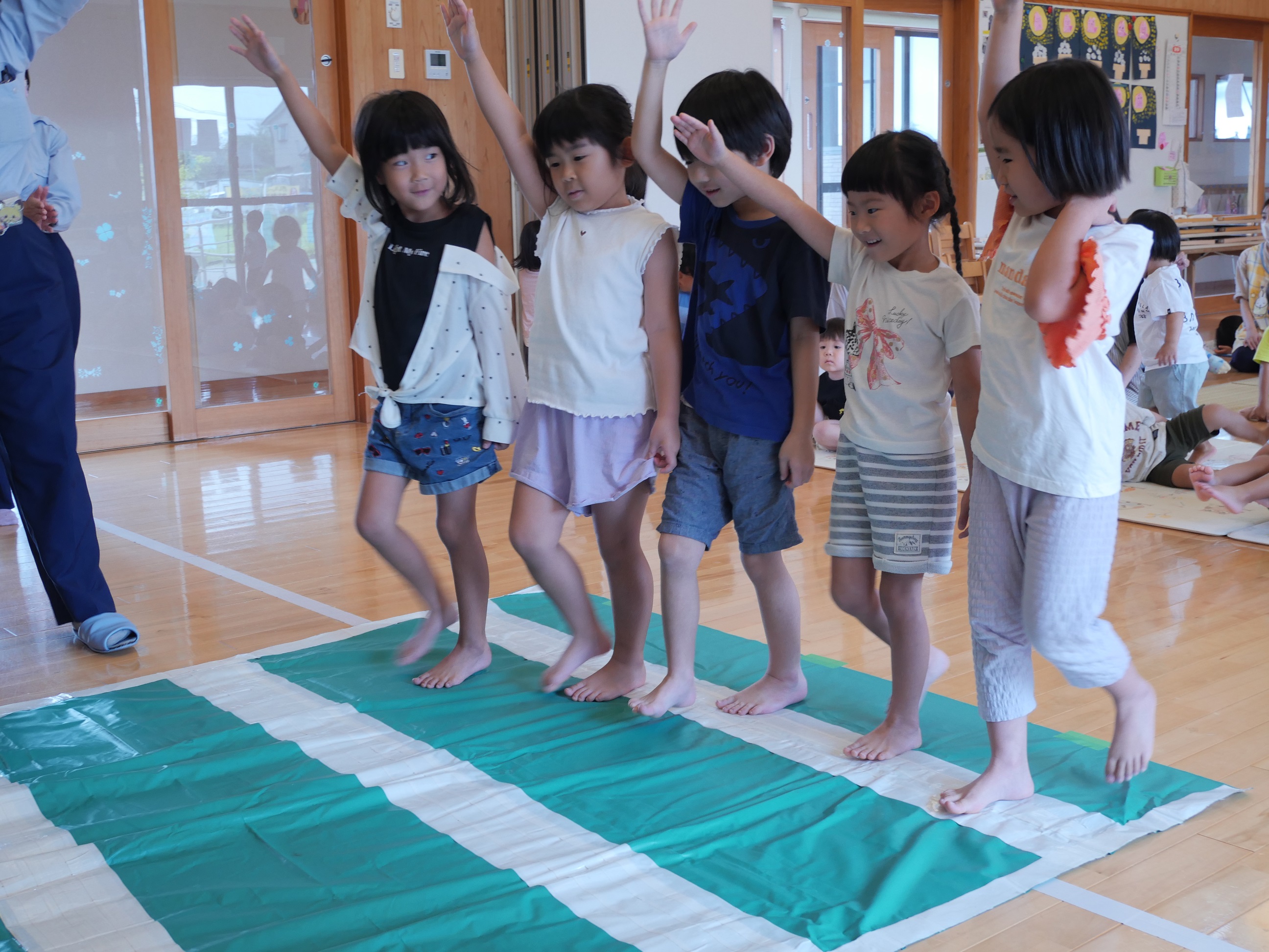 交通安全協会の指導員さんに来ていただき、交通ルールのお話がありました。子どもたちは真剣に話を聞き、シルエットさんによるクイズにも興味を持って答えていましたよ。