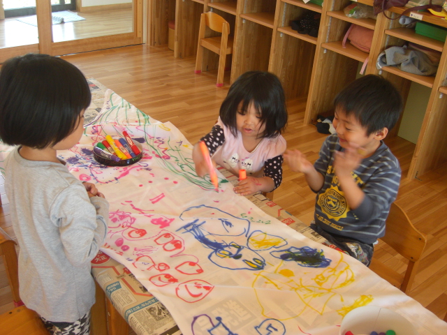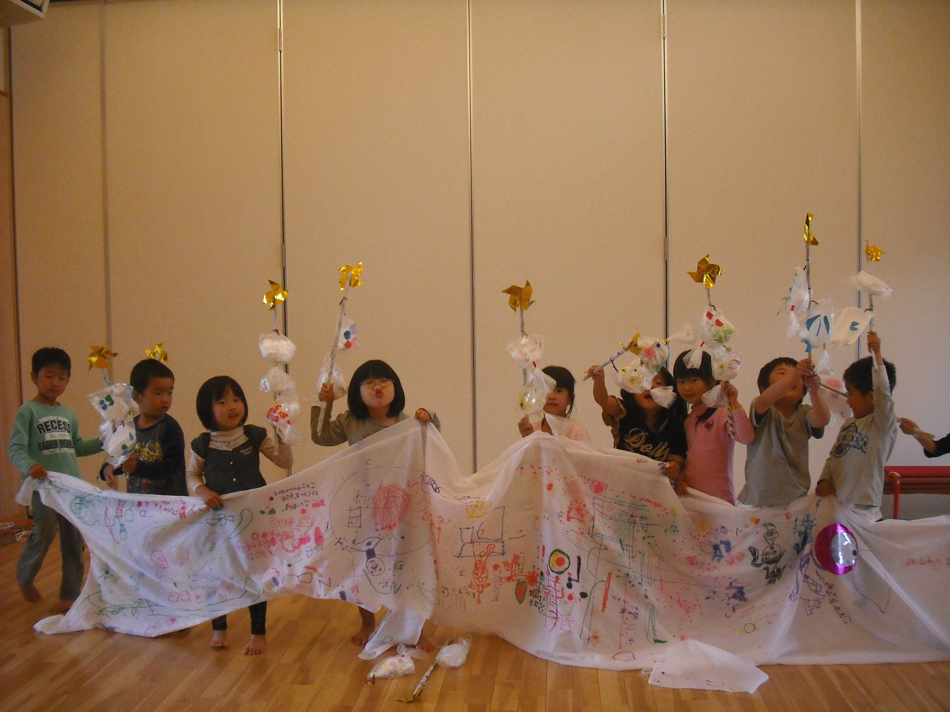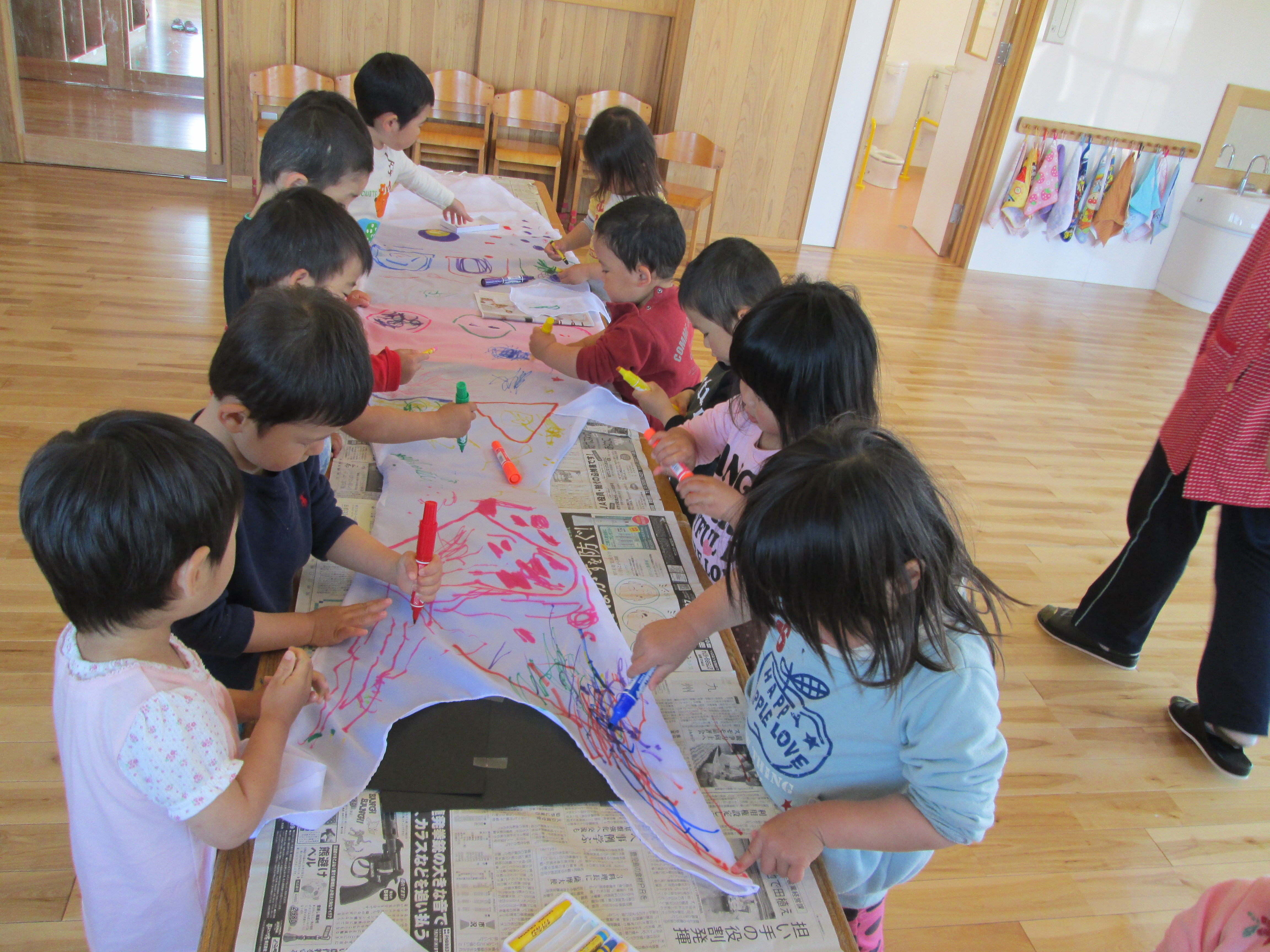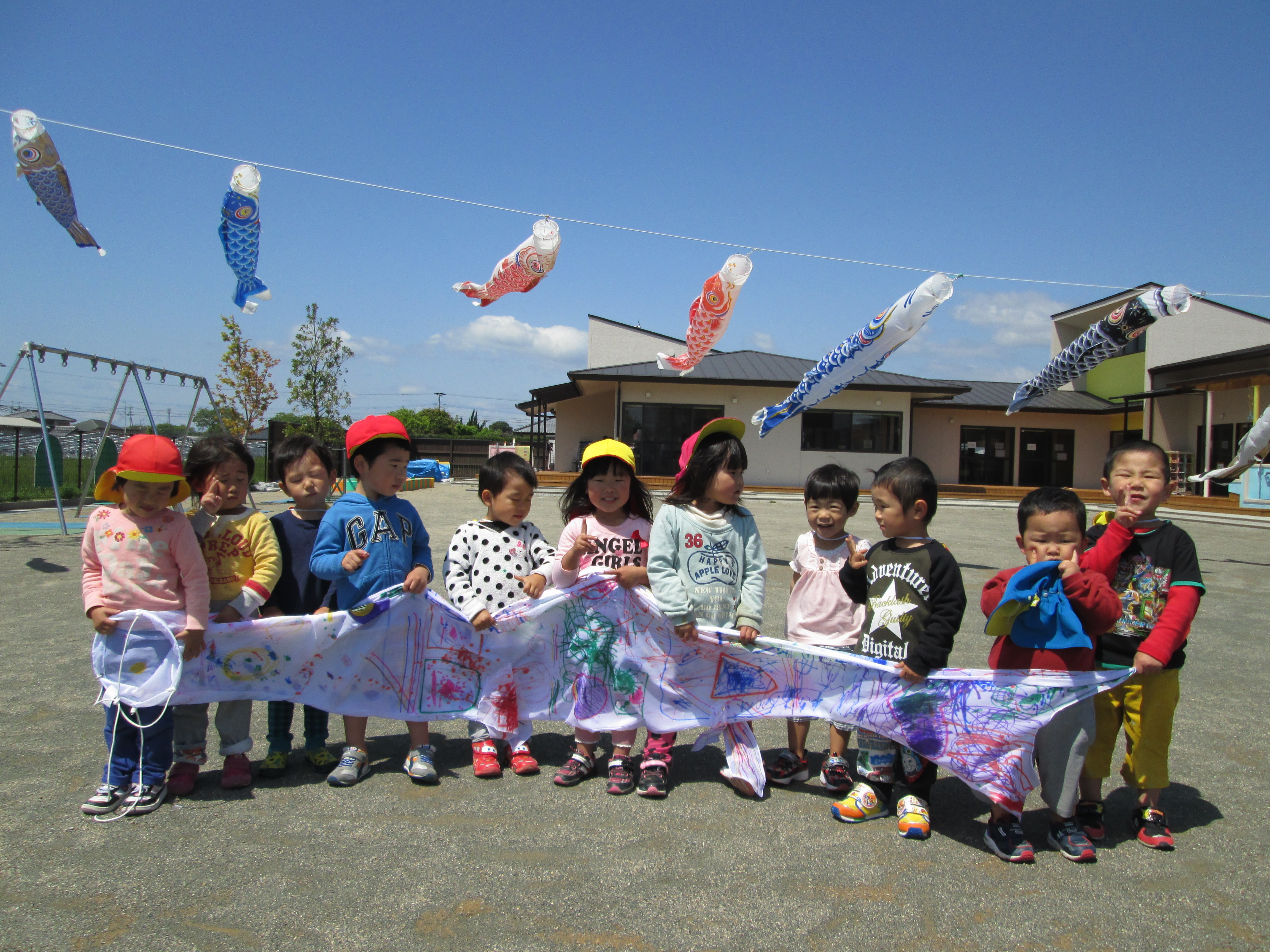 フローランテのこいのぼり 5月1日(木) 4月26日~5月11日まで、フローランテ宮崎に子ども達が作った鯉のぼりが泳いでいます。 各クラスごとに、クレヨン・ペン・スタンプなど色々な画材を使って世界に一つしかない鯉のぼりを作りました。 みんなの力作が、ピクニックガーデンで元気一杯泳いでいますよ~。