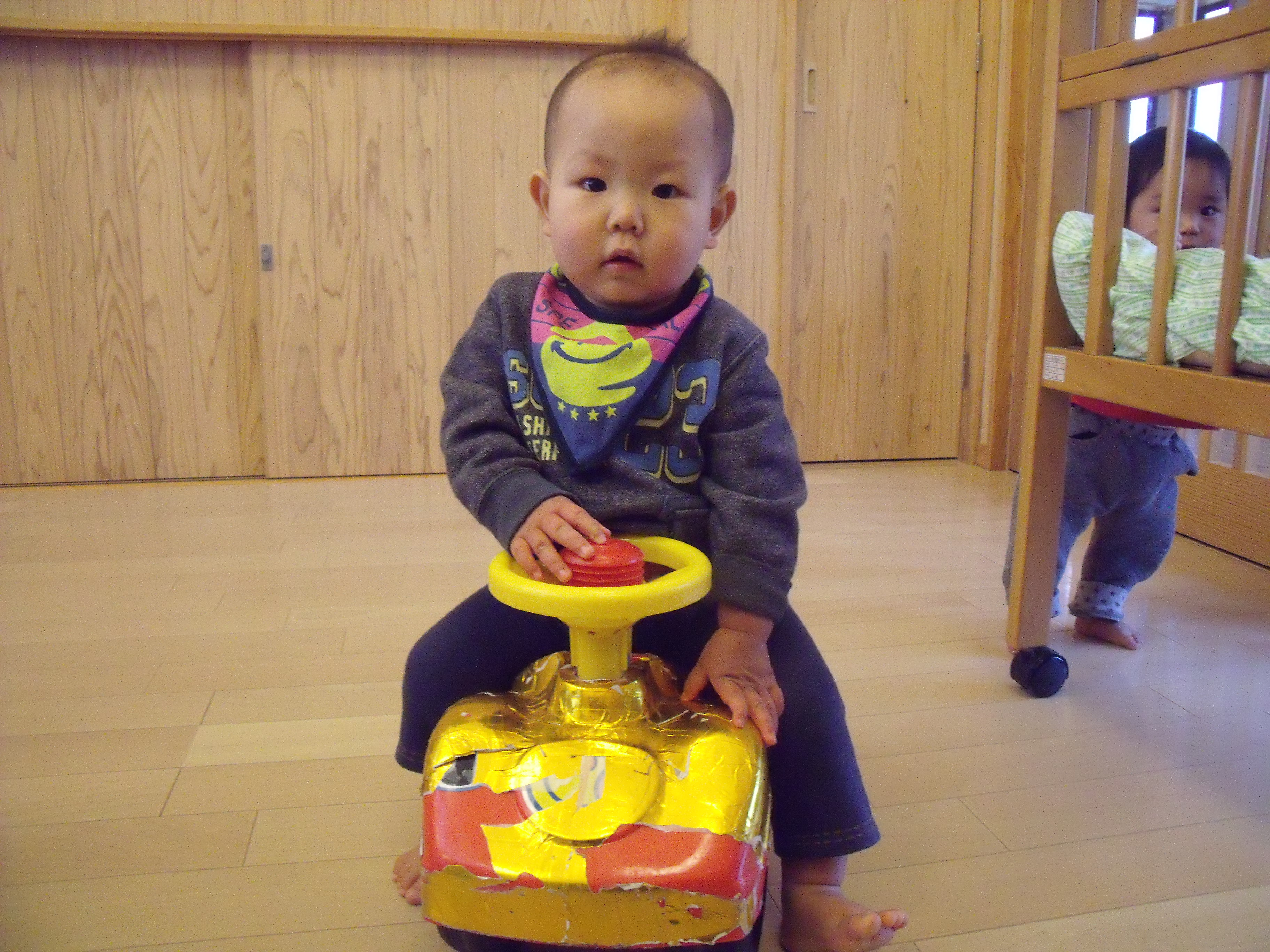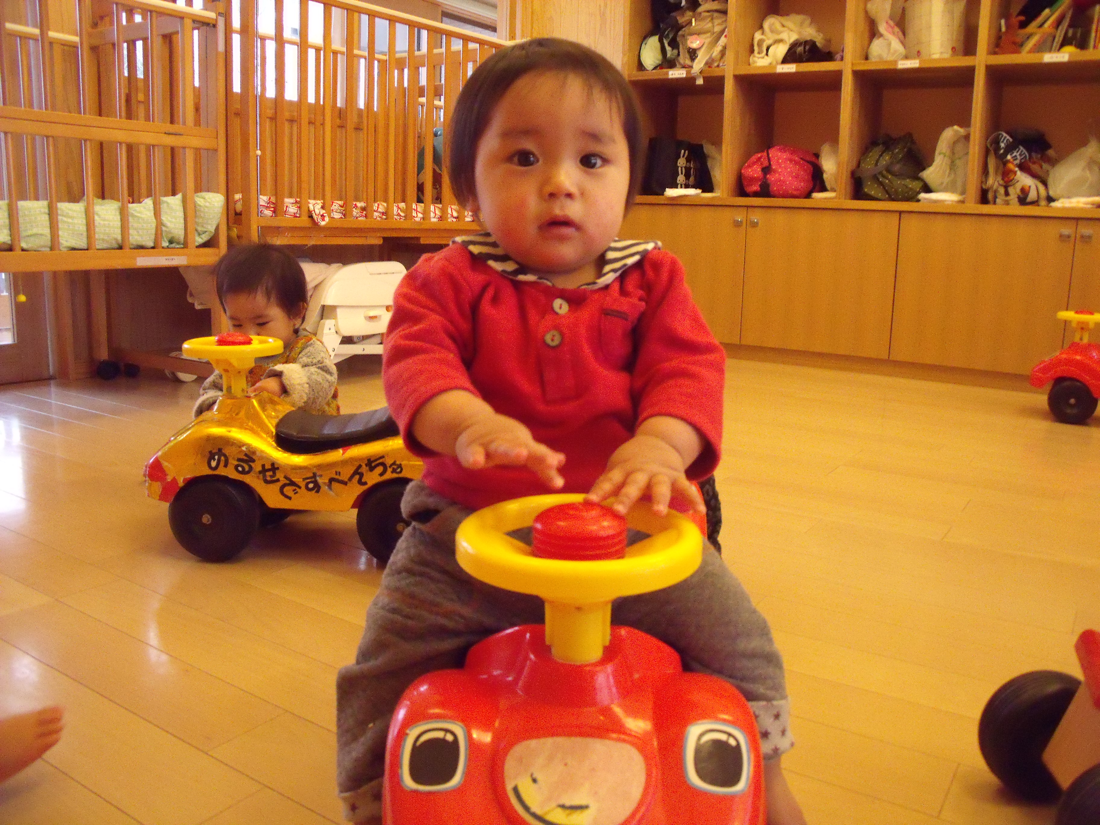 ひよこ組さんが楽しそうに車あそびを行っています。