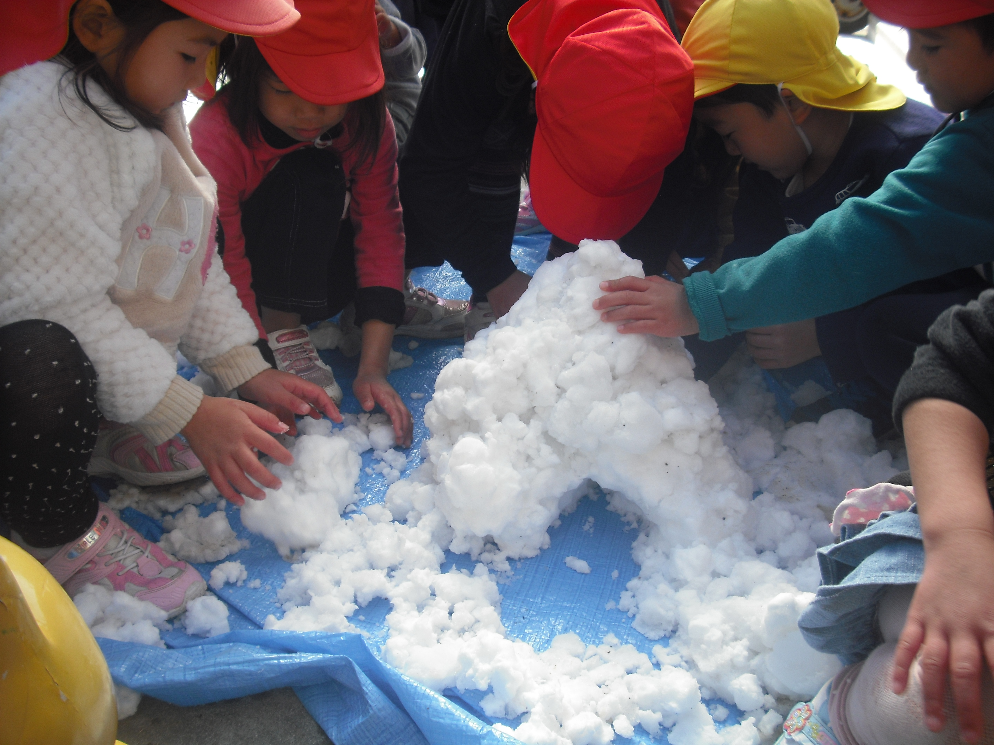 園庭で元気一杯遊んでいると、えびのから人間ドックにやってきたおじさんが『雪いるね~?』と軽トラックに積もった雪をプレゼントして下さいました。