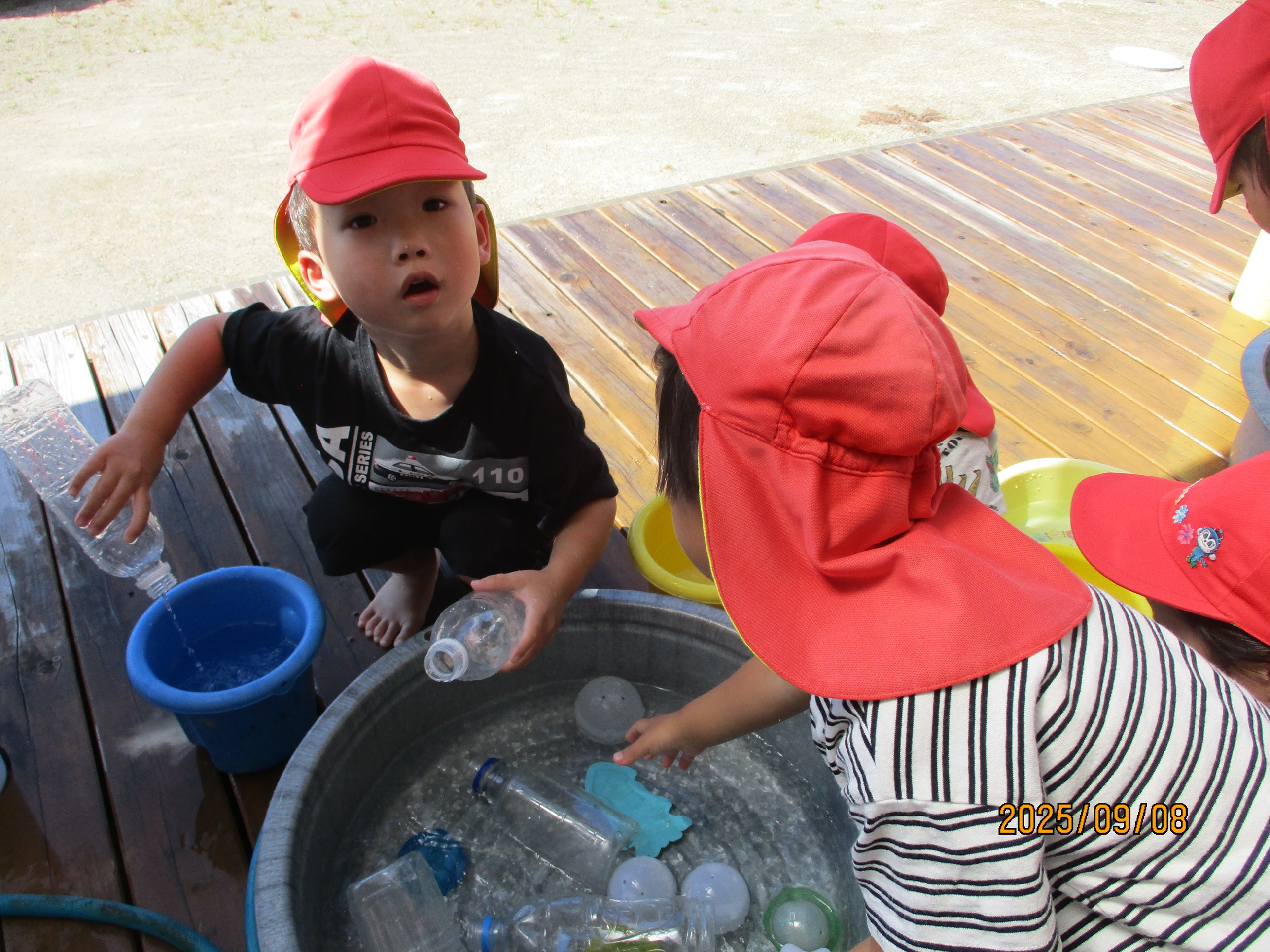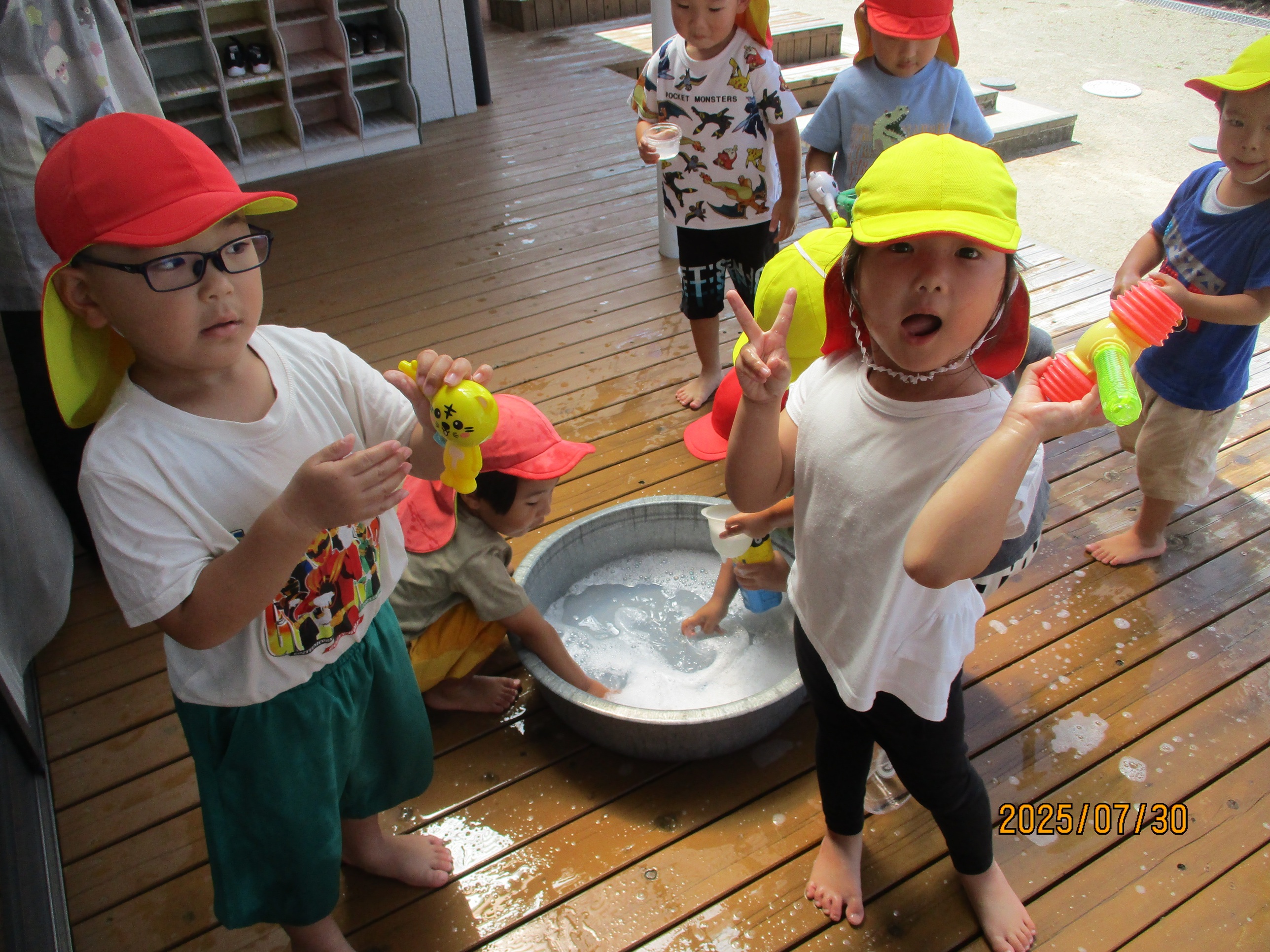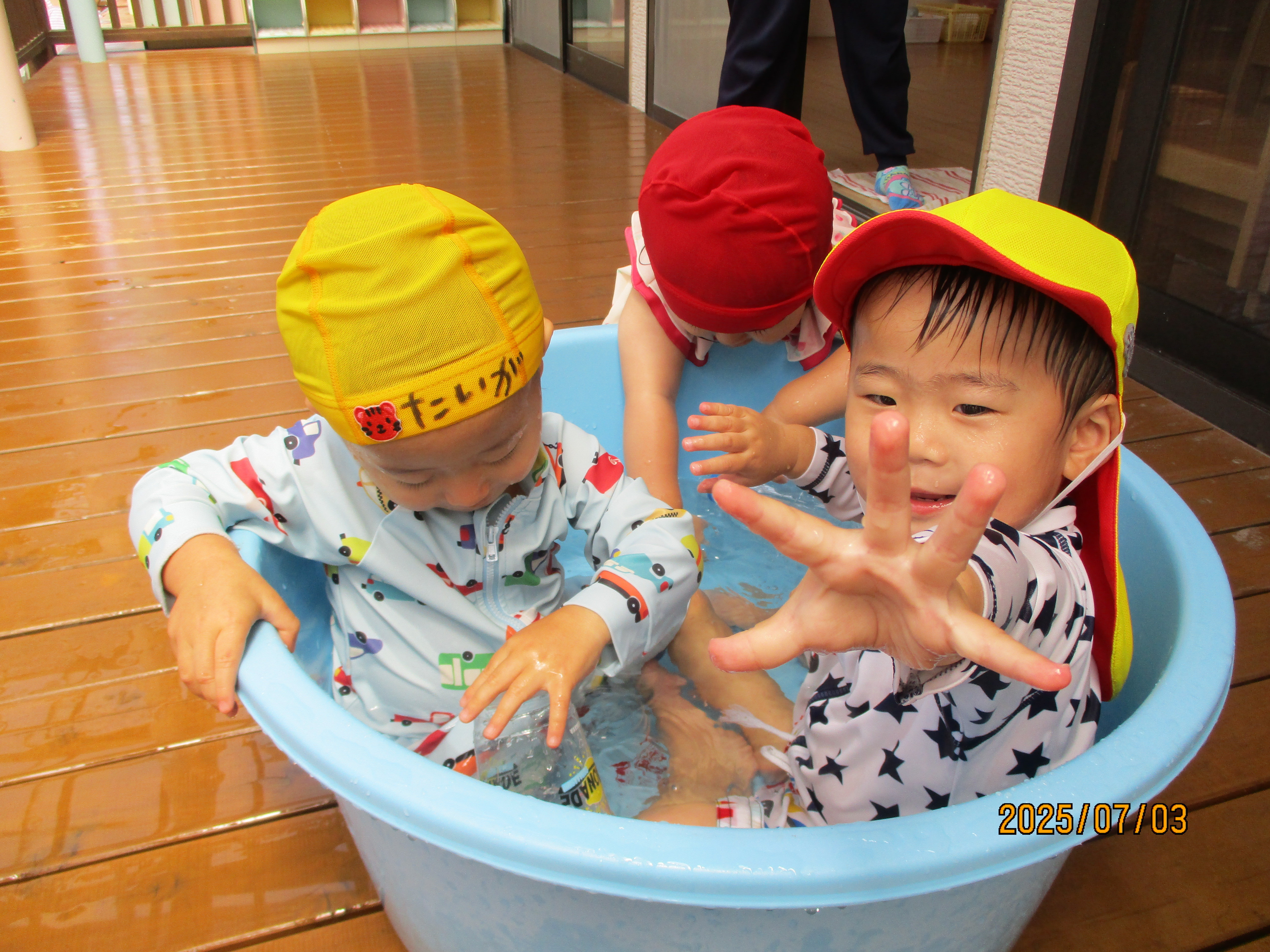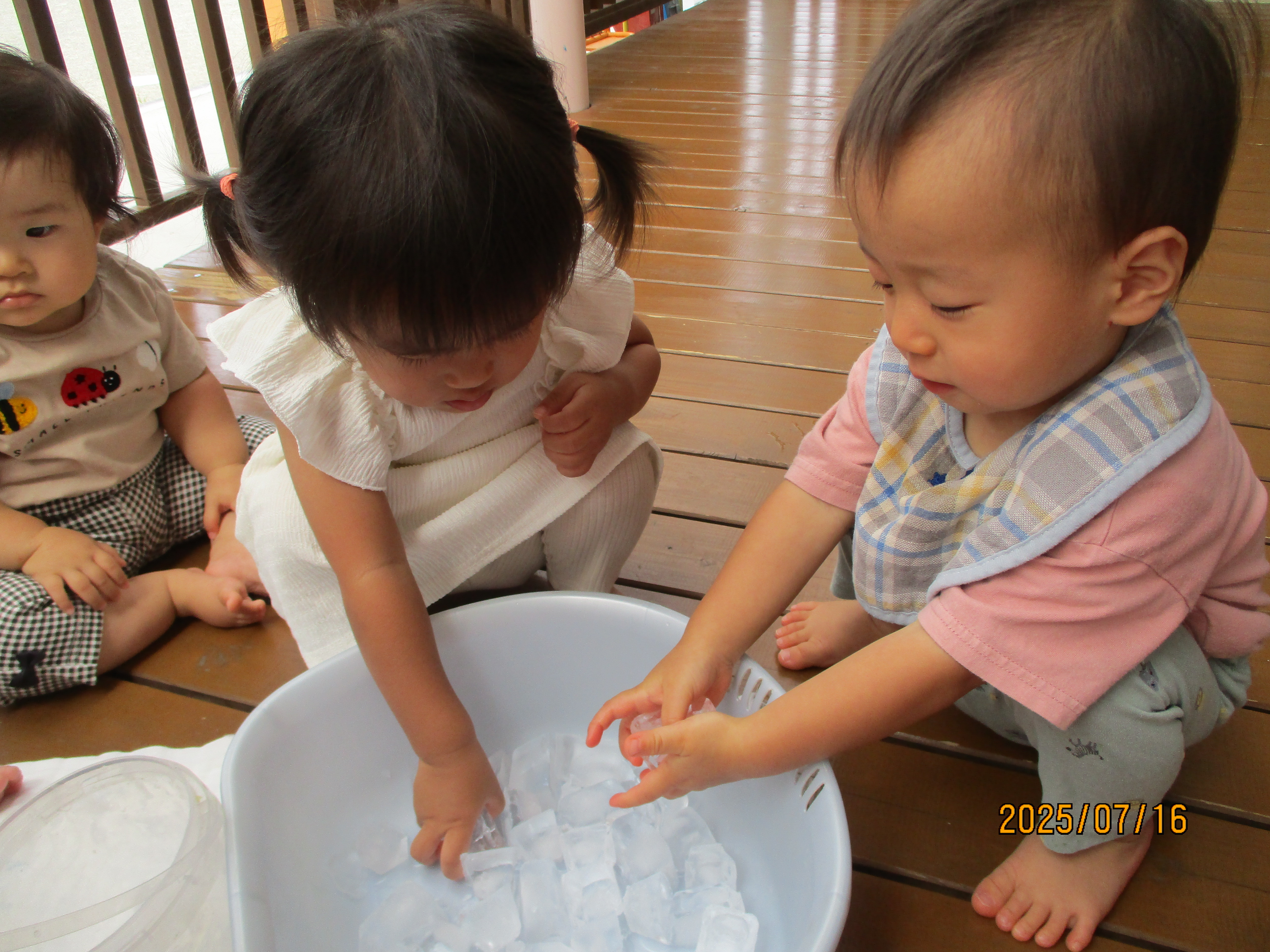 今年も暑い夏がやってきました~!!氷や水の冷たさや感触を感じながら遊びを満喫している子どもたち。お友だちと関わりながら笑顔で暑さを吹き飛ばしています!!